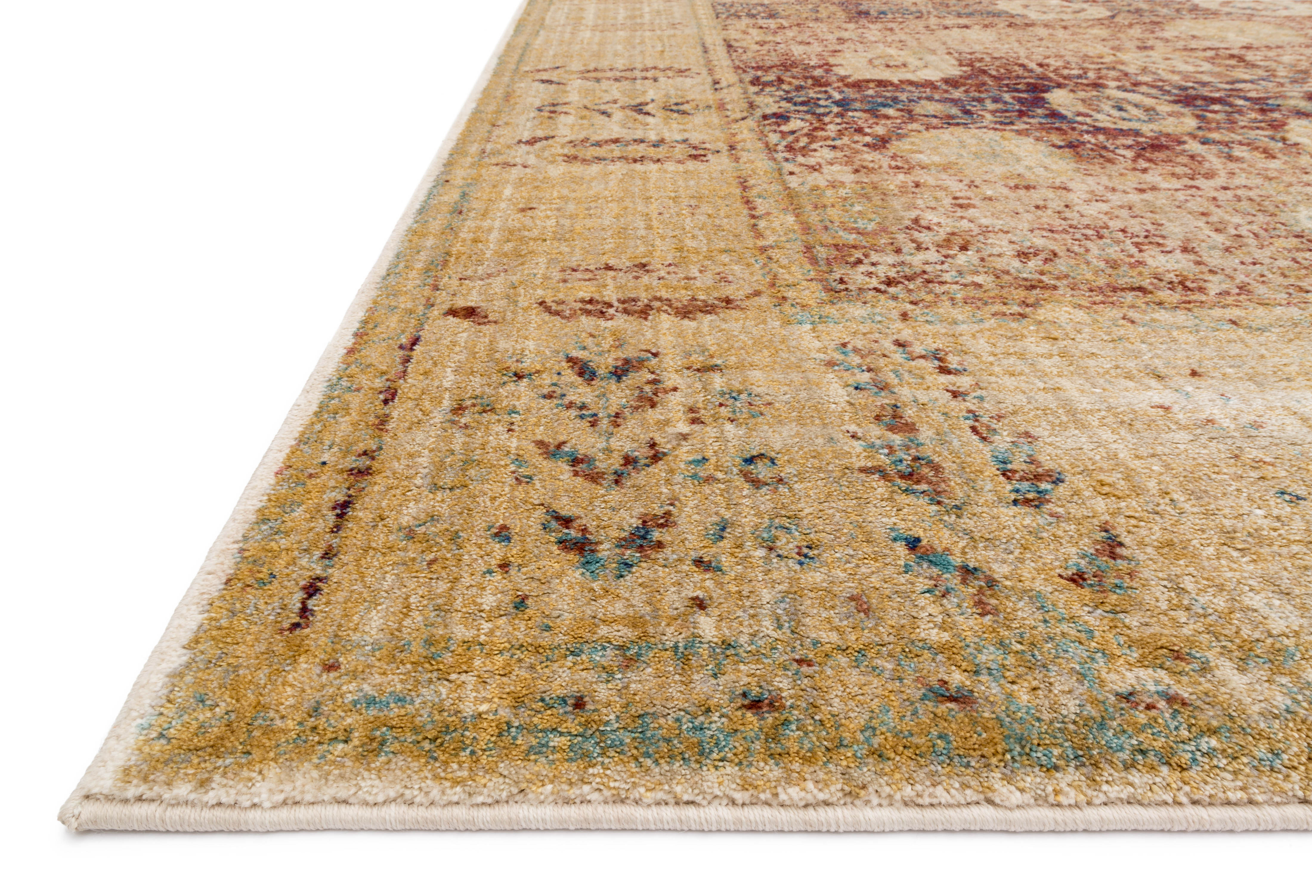 Ornate traditionals distressed and full of character are modernized by illuminating color-ways in this collection. The intricate detail, luster of colors, and unbeatable price point establish the value of this outstanding collection.