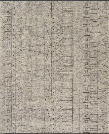 Drawing inspiration from tribal influences, this collection combines relaxed linear pattern with a sophisticated color palette. Each rug, which is hand-knotted of wool and viscose from bamboo, is crafted entirely by hand by master artisans in India.