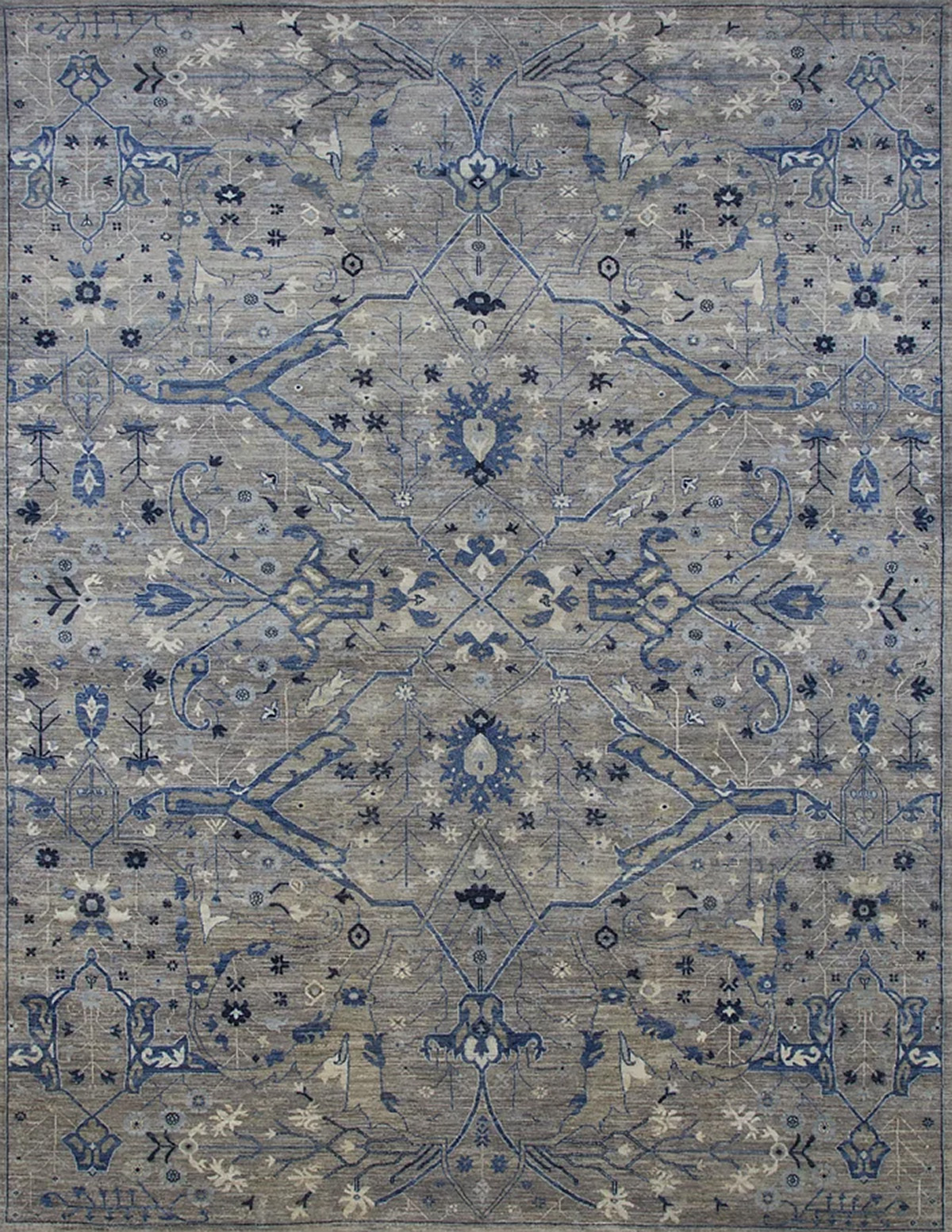 Traditional Beige/Tan Wool Area Rug: Antiquity Renaissance Charm 1137004: Taupe/Denim (Hand-Knotted Area Rug)