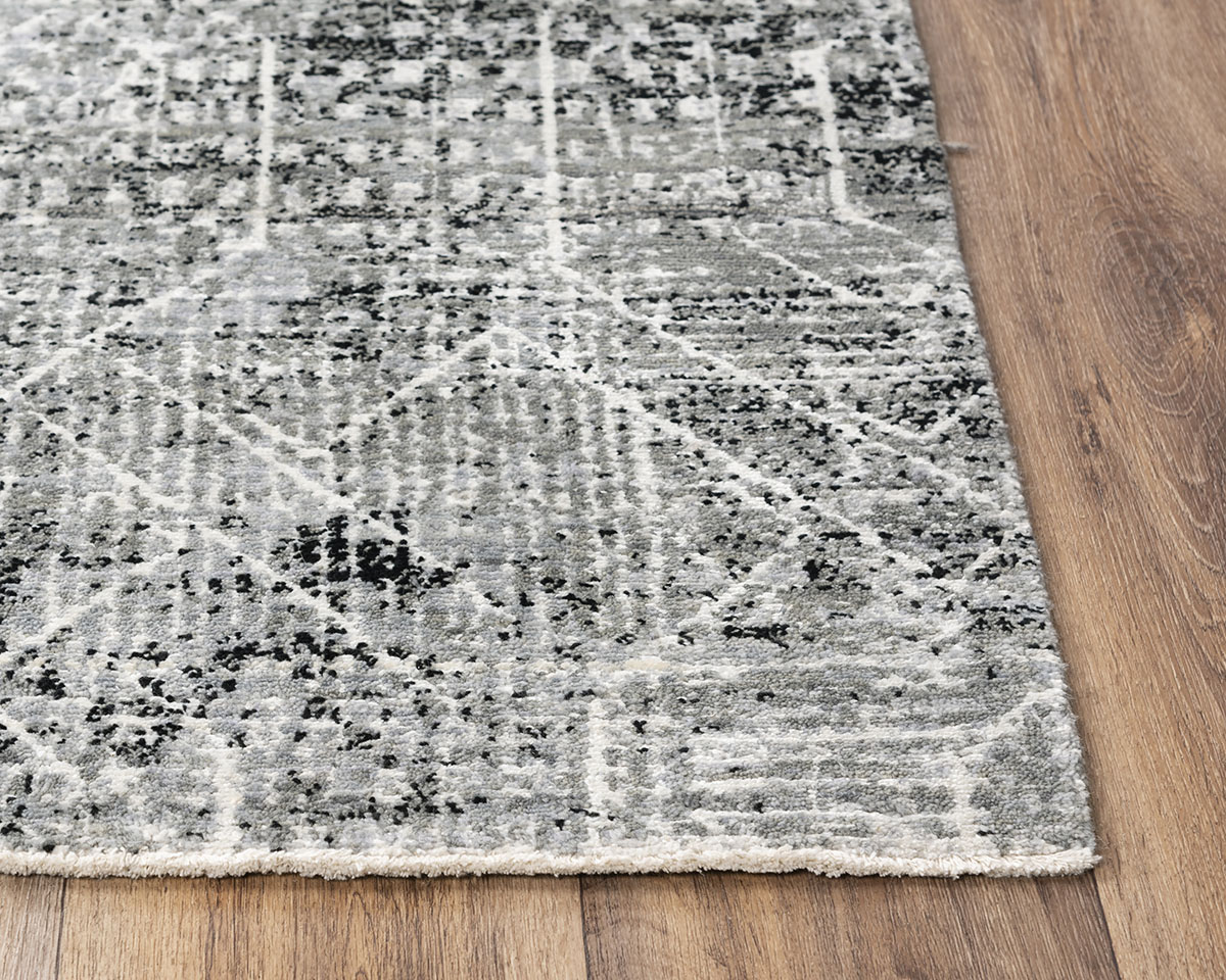 This collection is as close as you can get to a 100% hand knotted rug at a fraction of the cost. Power loomed at our plant in India using New Zealand wool accented with a shimmering fiber of tencel, nylon and wool blend, each piece is then shipped to our hand made facility where it is hand washed, hand stretched, hand sheared and hand serged. To complete the authentic look of a hand knotted rug, it features real fringe trimmed to a short 1/4 inch created from the warp/weft strings.