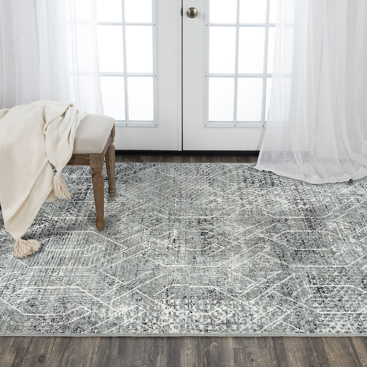 Modern Grey Wool Area Rug: Bainbridge Arya 21101: Grey/Ivory (Power-Loomed Area Rug)