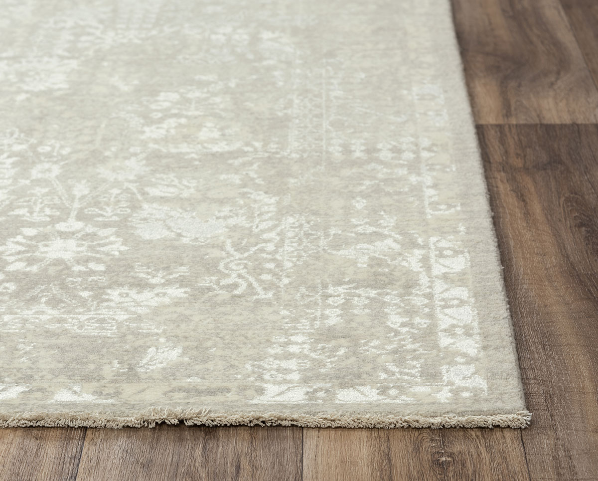 This collection is as close as you can get to a 100% hand knotted rug at a fraction of the cost. Power loomed at our plant in India using New Zealand wool accented with a shimmering fiber of tencel, nylon and wool blend, each piece is then shipped to our hand made facility where it is hand washed, hand stretched, hand sheared and hand serged. To complete the authentic look of a hand knotted rug, it features real fringe trimmed to a short 1/4 inch created from the warp/weft strings.