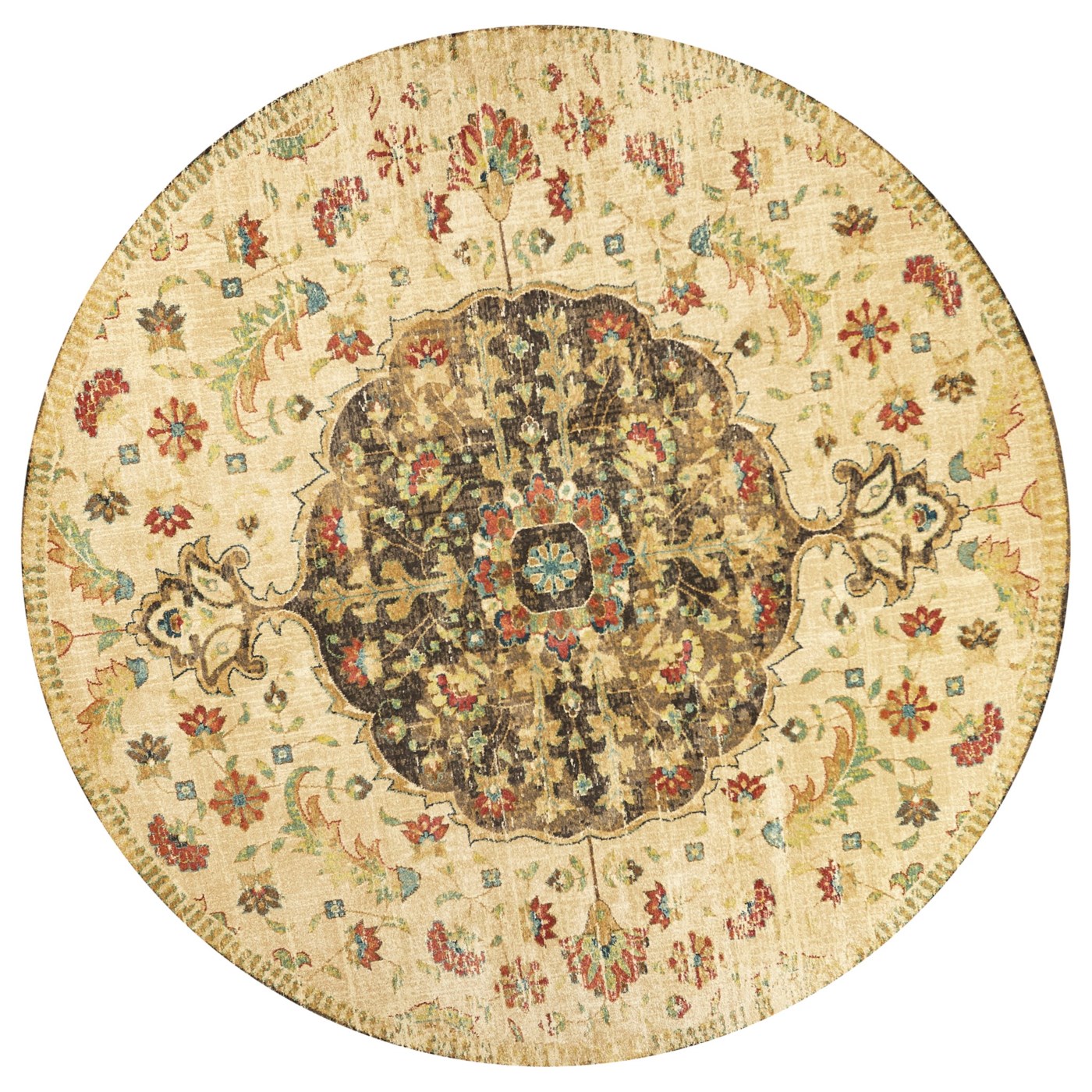Vintage traditional patterns woven in organic spice tones bring depth and beauty to your floors. These rugs will make your home complete. Power-loomed in Turkey using 18 colors of polypropylene frisee yearn with a 1/2" pile height.