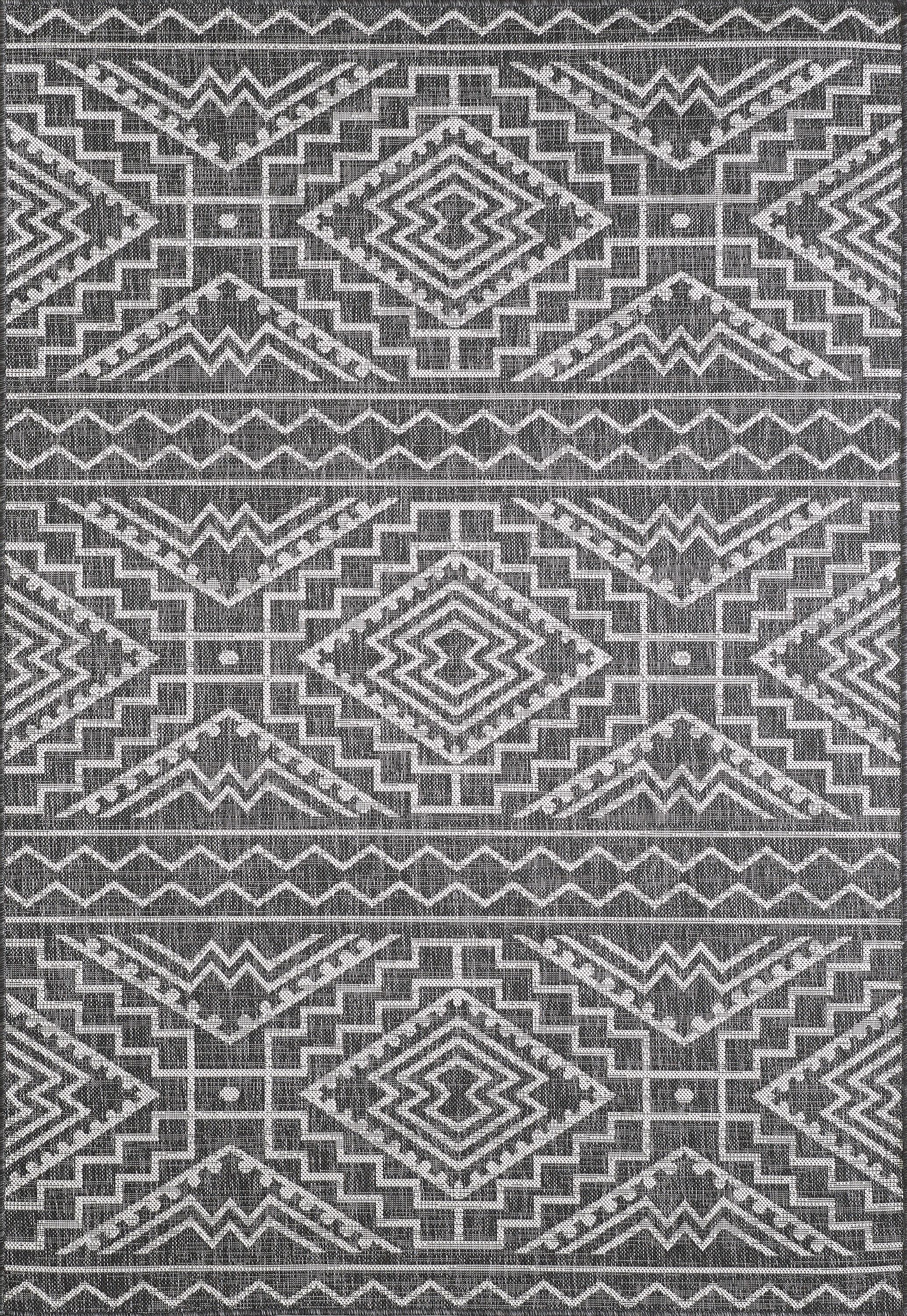 Modern/Bohemian/Indoor-Outdoor Charcoal/Black Area Rug: Madison Providence 13161675: Charcoal (Power-Loomed Area Rug)
