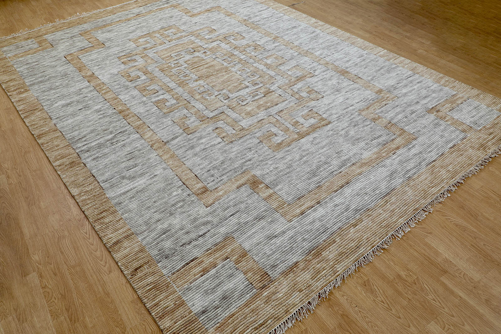 Inspired by timeless desert geometry and soft architectural motifs, this collection is woven by skilled artisans using 100% natural wool. Cairo features a warm beige and light sand palette that adds calm elegance to any space. Its texture offers lasting comfort, durability, and sustainable luxury for modern and classic interiors.