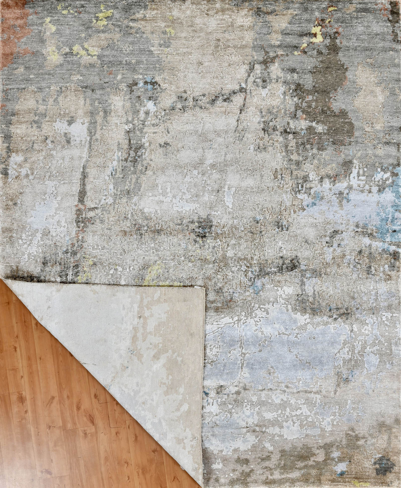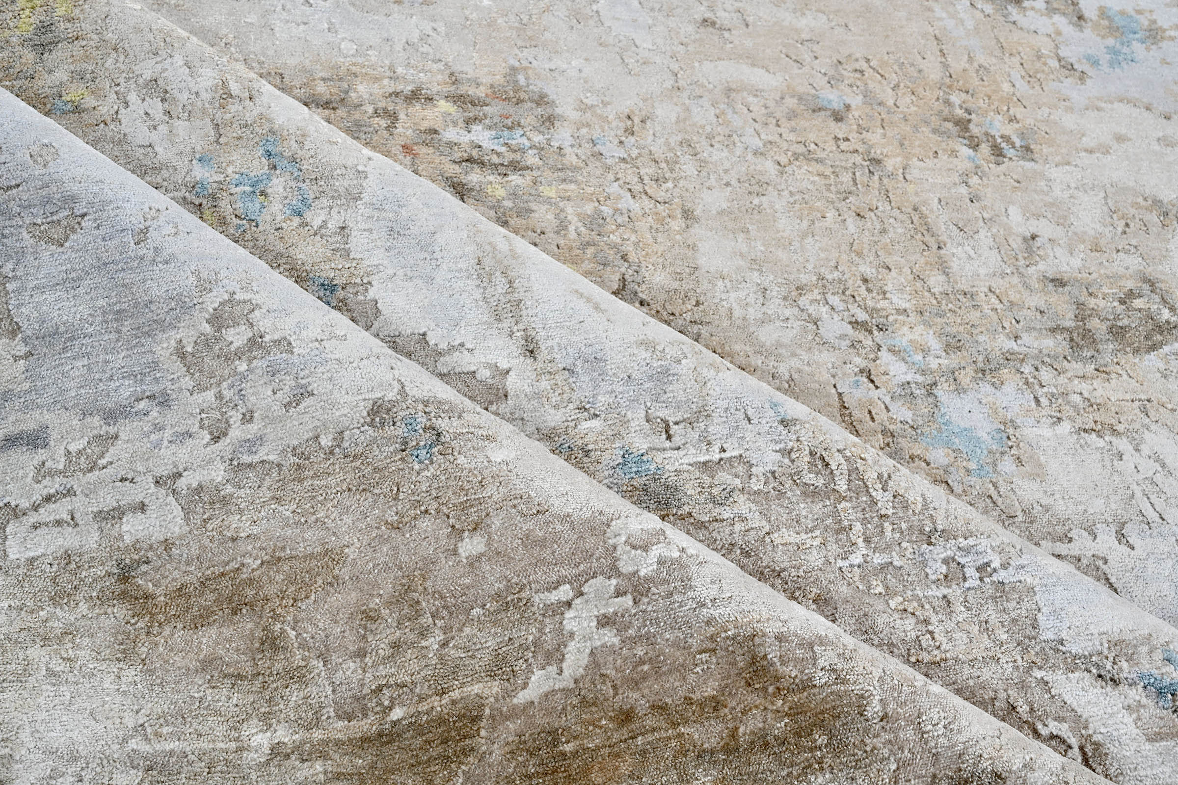 Hand-knotted in India of wool and bamboo silk, the Cocoon Collection is an abstract expression of pattern that continually shifts tones in the light.