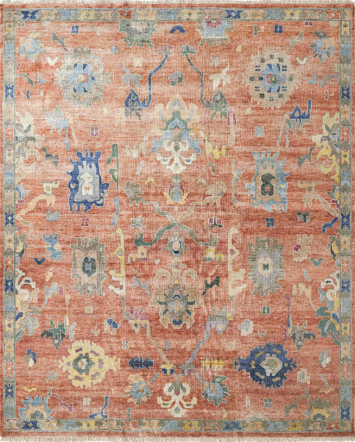 Vibrant pops of popular designer colors bring a modern update to the motifs and patterns found in this heirloom-worthy collection of classic oushak rug designs. Meticulously hand knotted using premium hand-spun wool yarns, this collection reaches a new level of fashion chic through fresh, cutting-edge color palettes.