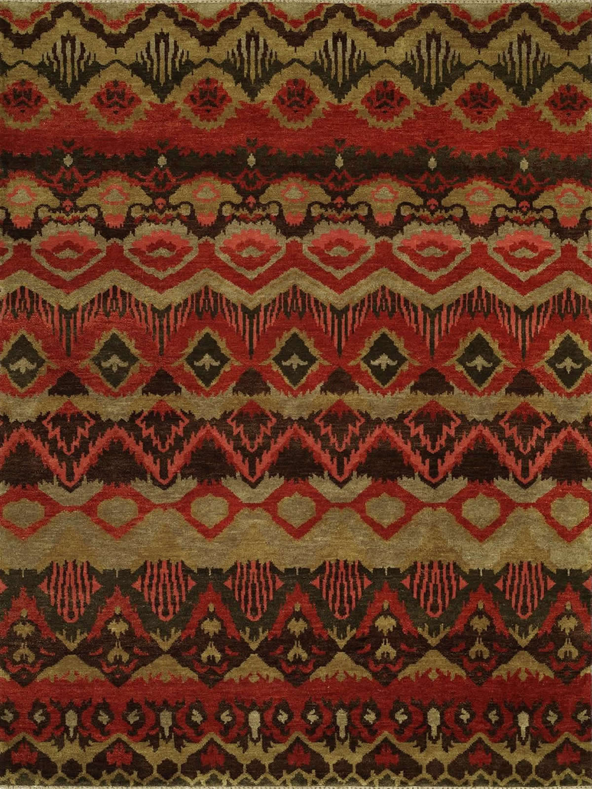 A lively assemblage of traditional motifs and patterns with narrow borders give these rugs a transitional, yet timeless appeal. Each rug is hand-knotted using premium hand-spun wool.