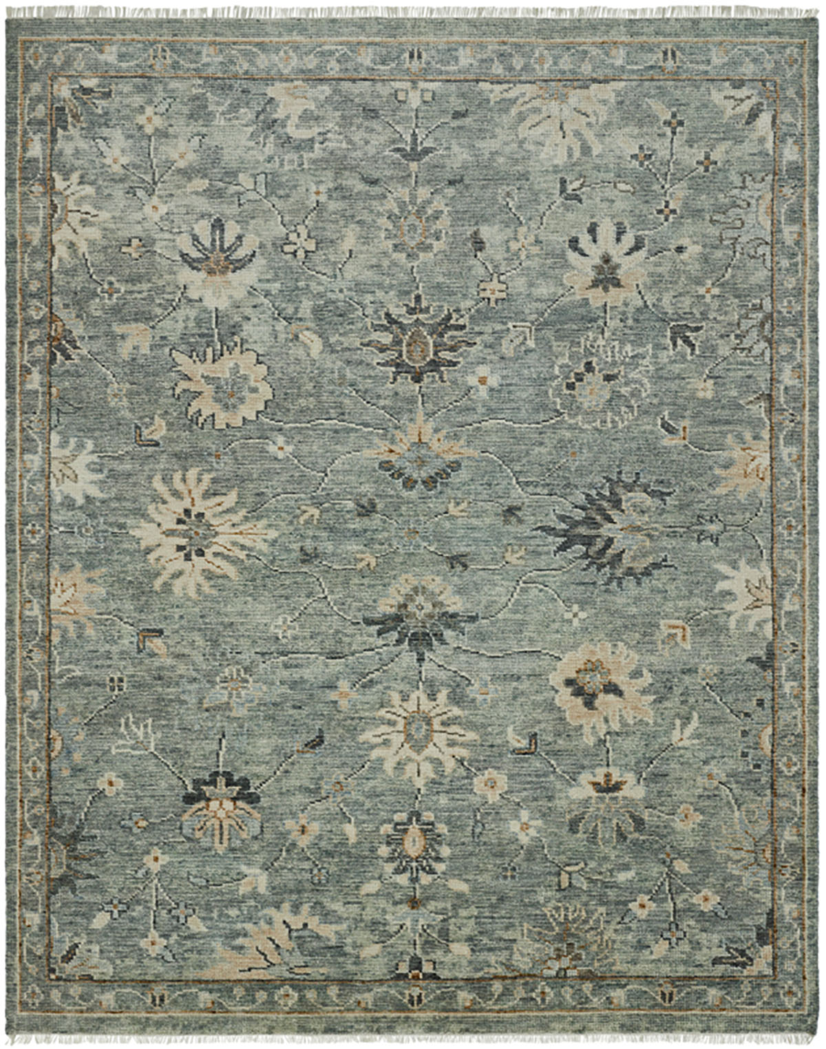 Classic floral motifs are the height of fashion for today's floors, and the modern colors, motifs and designs of the Oushak-inspired rugs in this updated-traditional collection are no exception. Meticulously hand knotted of 100% premium hand-spun wool yarns.