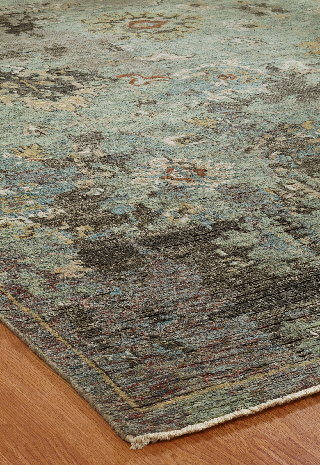 For those who appreciate the modern side of traditional, this fashionable collection of borderless "broken" Oushak designs is hand knotted in a Turkish-style weave using a combination of premium wool and bamboo silk.