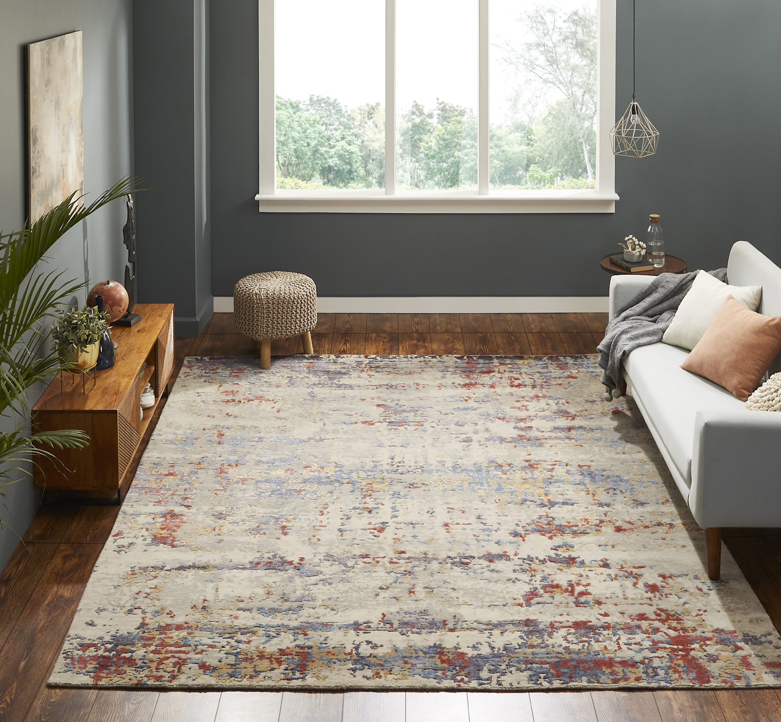The contemporary loop-and-pile weave makes for a modern statement