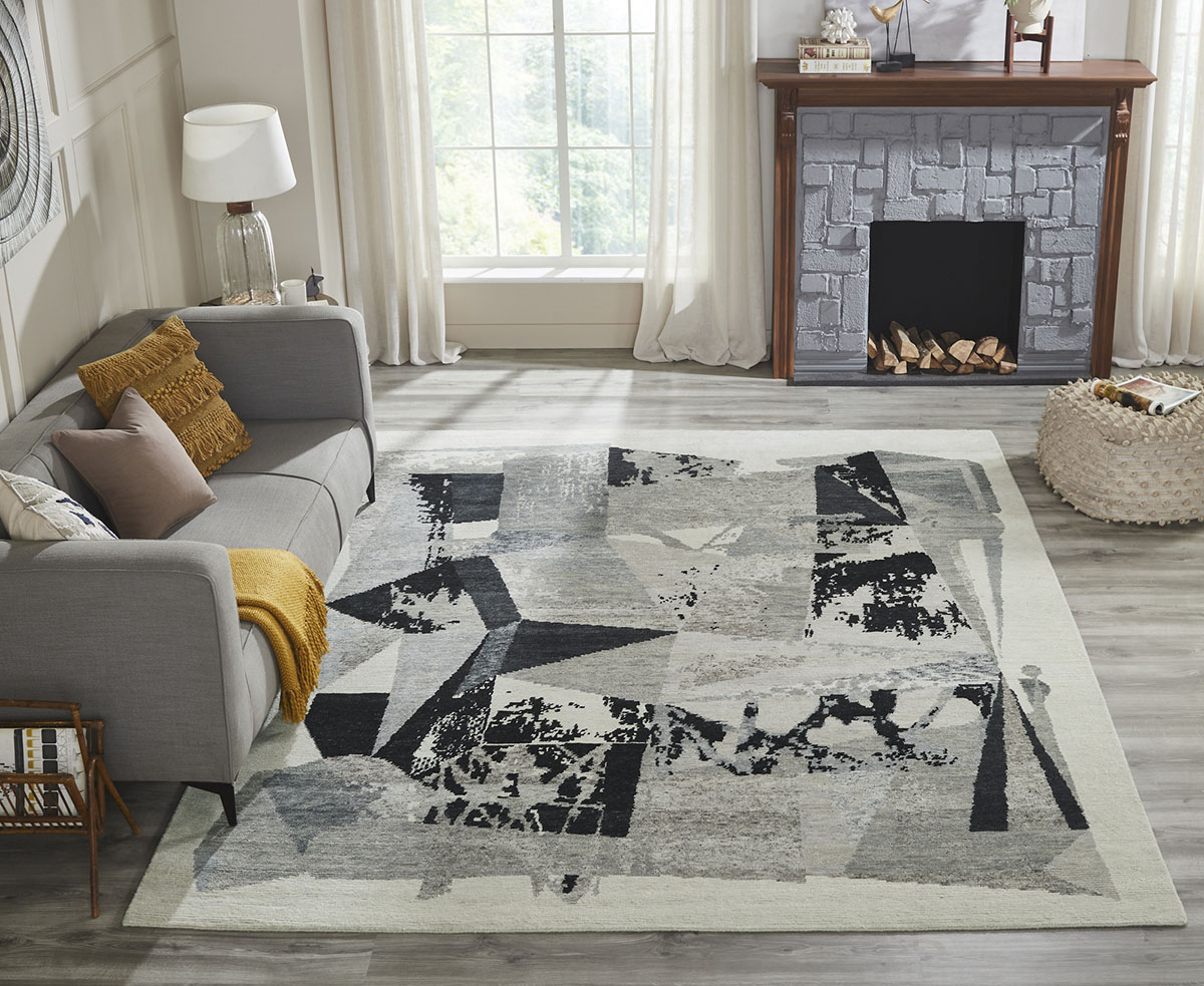 Contemporary graphic motifs project a spirit of modern sophistication to the various patterns in this cutting-edge rug collection. Meticulously hand knotted of premium hand-spun wool.