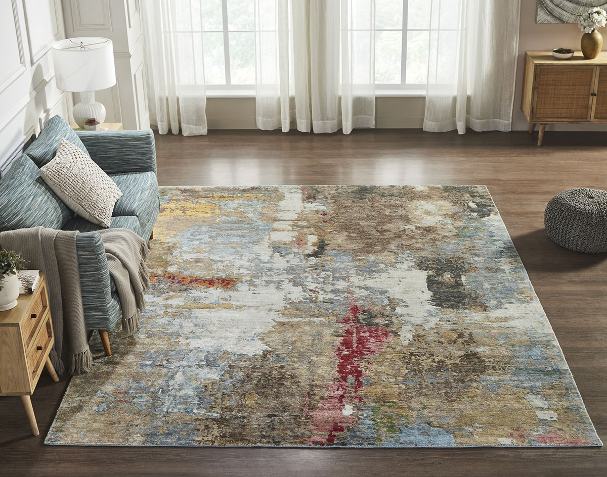 Each rug in this collection is a modern abstract study in dimensional texture and high-energy explosions of color. Each of these rugs are hand knotted in a Tibetan knot weave using 100% bamboo silk, and specific designs within the collection have been hand carved to impart special high-low textural effects.