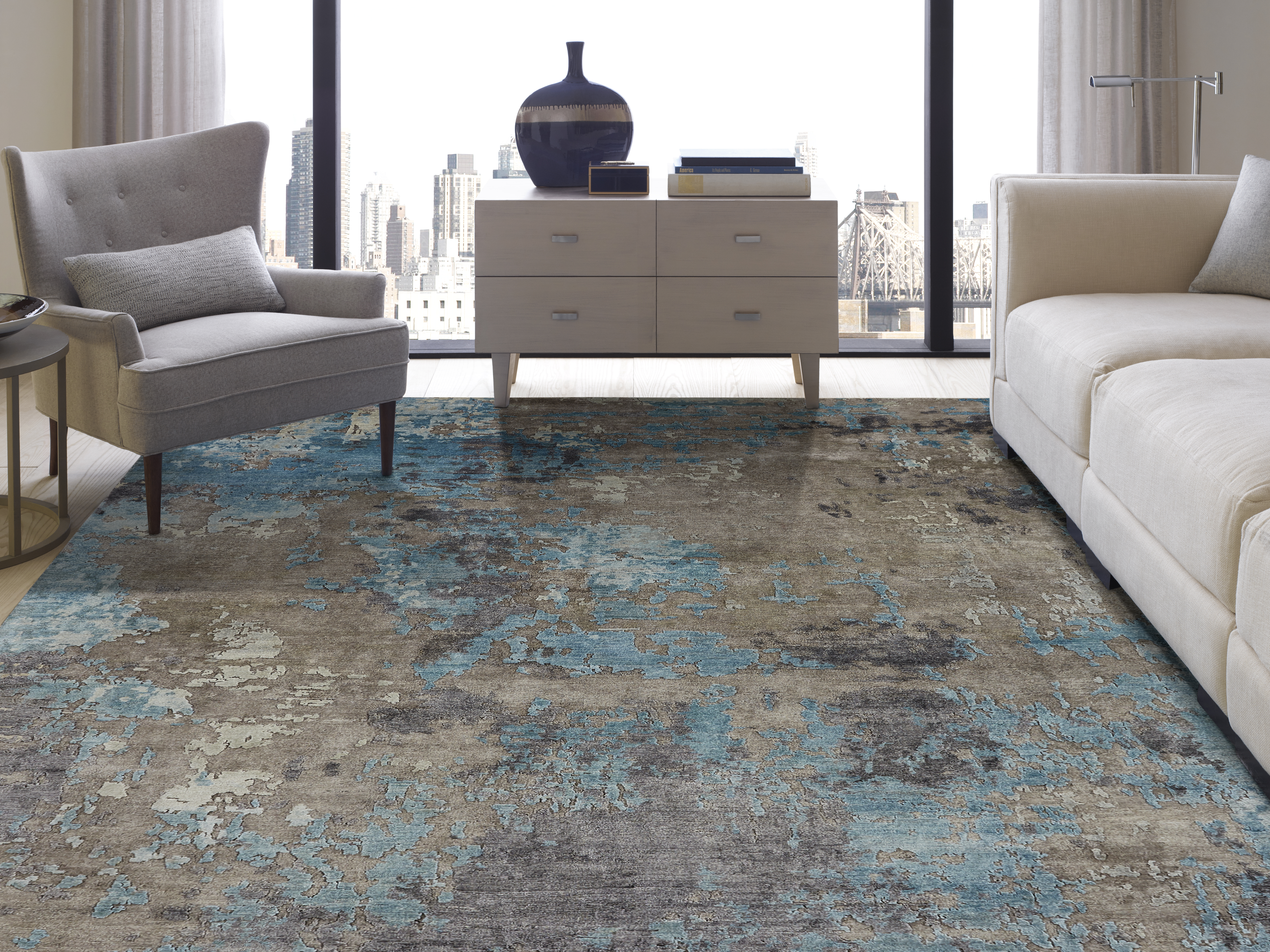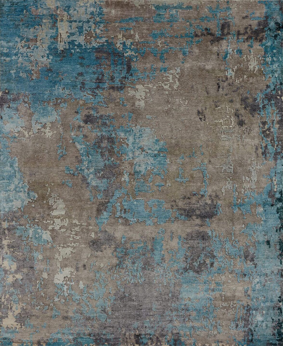 Each rug in this collection is a modern abstract study in dimensional texture and high-energy explosions of color. Each of these rugs are hand knotted in a Tibetan knot weave using 100% bamboo silk, and specific designs within the collection have been hand carved to impart special high-low textural effects.