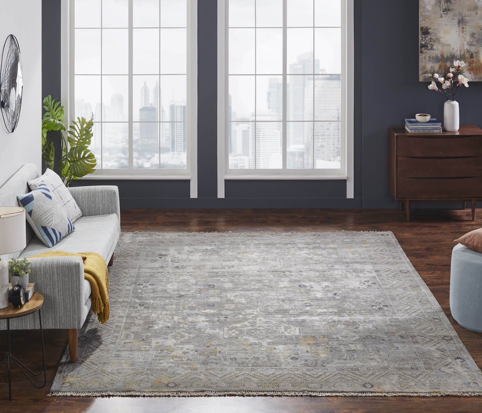 Equally at home in both traditional and modern settings, this vintage-inspired collection emulates many of the classic motifs and designs found in treasured antique rugs. Hand-knotted using a combination of fine wool and bamboo silk yarns in stylish easy-to-live-with colorways.