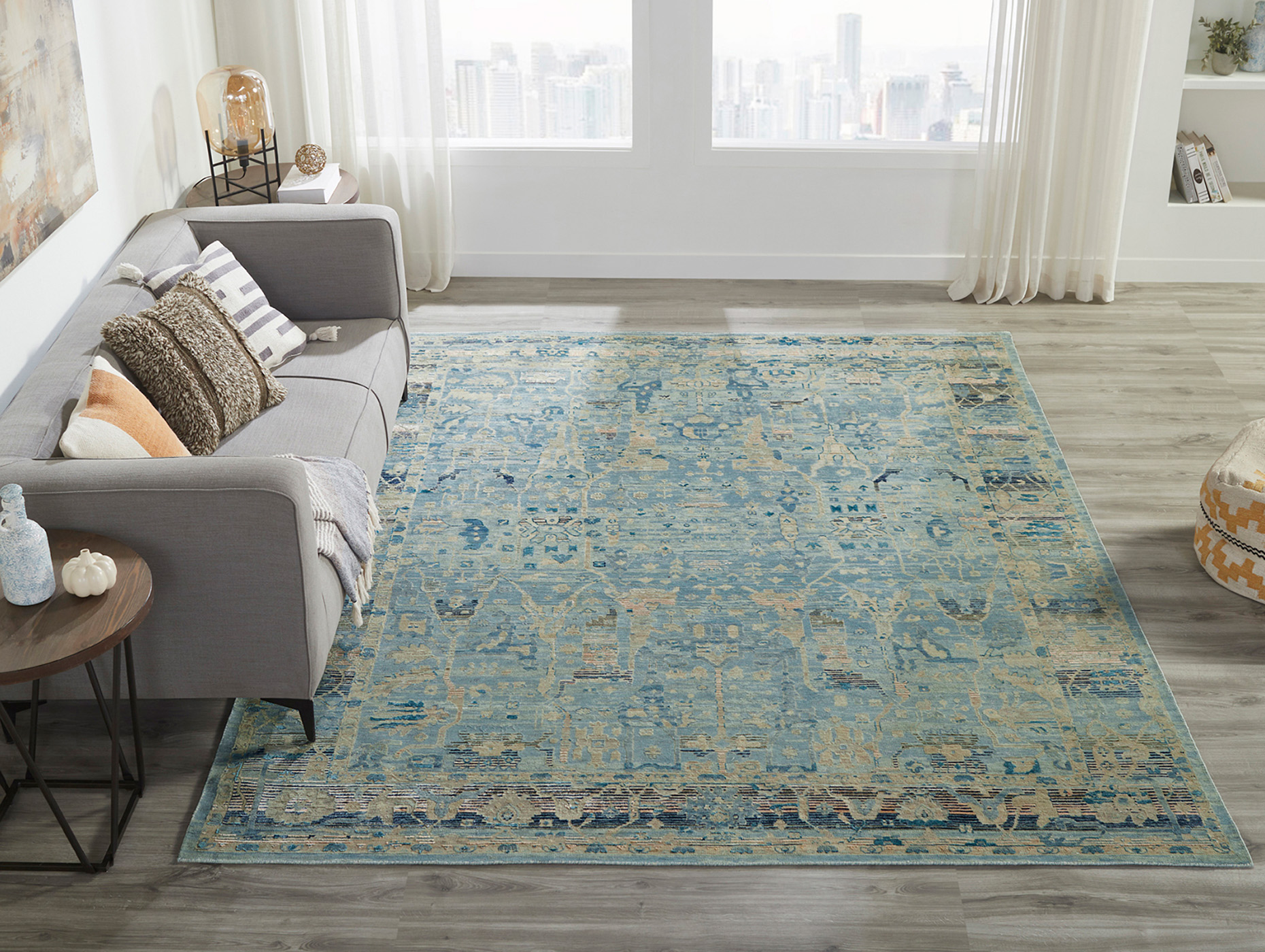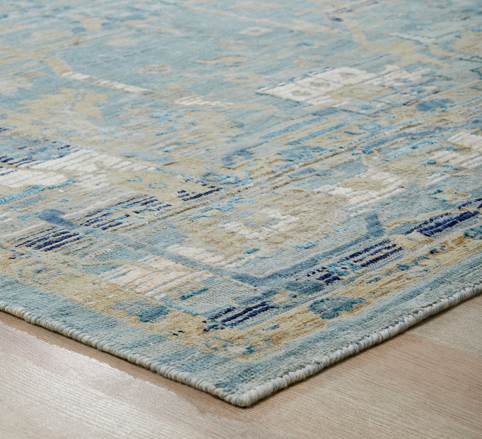 A fresh modern idiom is apparent in these traditional patterns thanks to special tonal erased effects and an intricate high-low texture. This high-quality collection of updated antique floral designs is hand knotted using a combination of premium wool and bamboo silk.