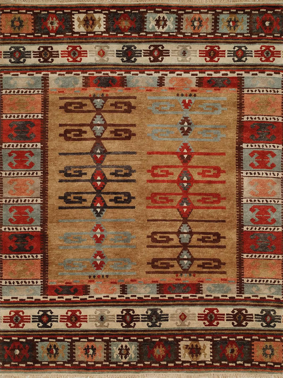 Uniquely casual, these rugs combine tribal and Southwestern patterns in a combination of traditional and fashionable colors and motifs. Stylish with a rugged appeal, each rug is hand-knotted from 100% premium hand-spun wool. A handsome choice!
