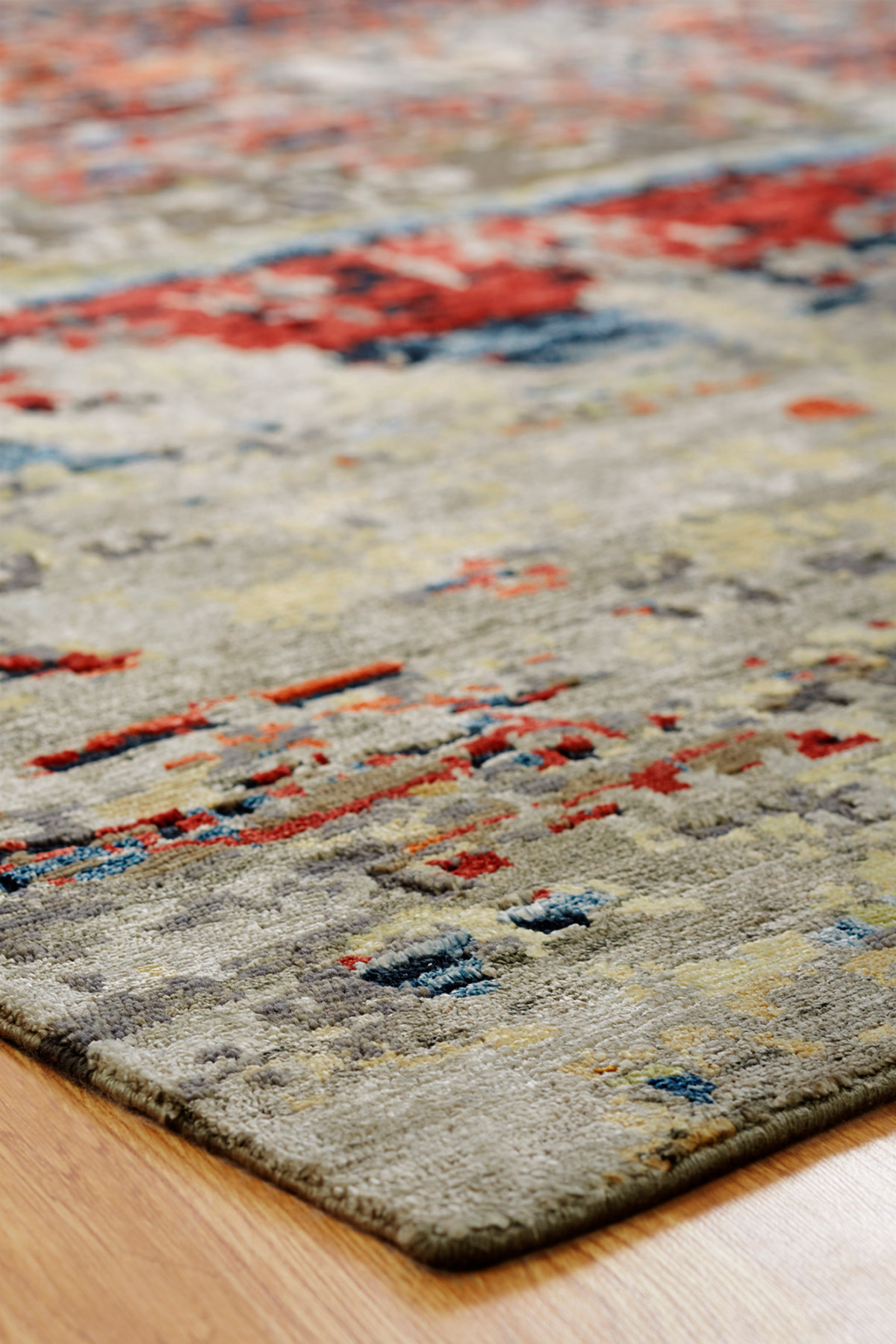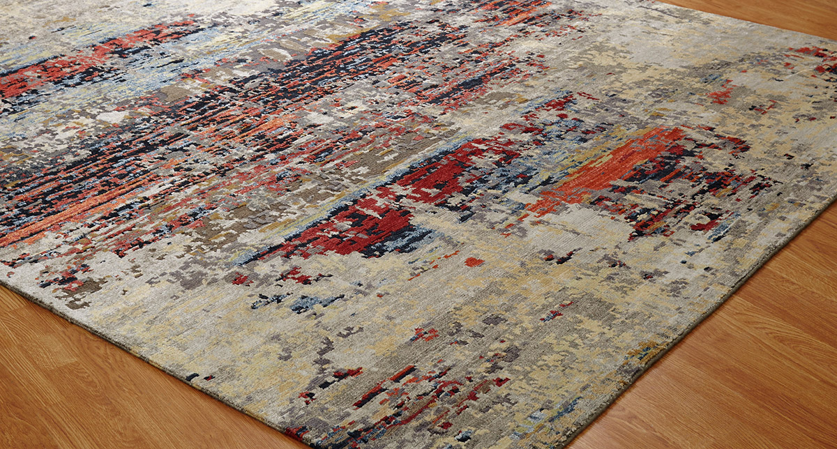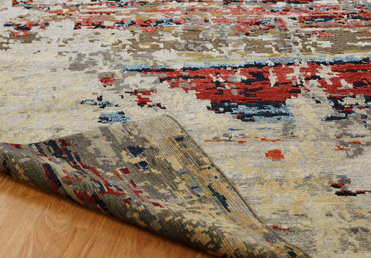 Bringing art into life, these are inspired by a series of abstract prints featuring subdued color palettes. Hand knotted in a Tibetan weave using a wool-bamboo silk blend, these rugs feature the added dimension of high-low carving.