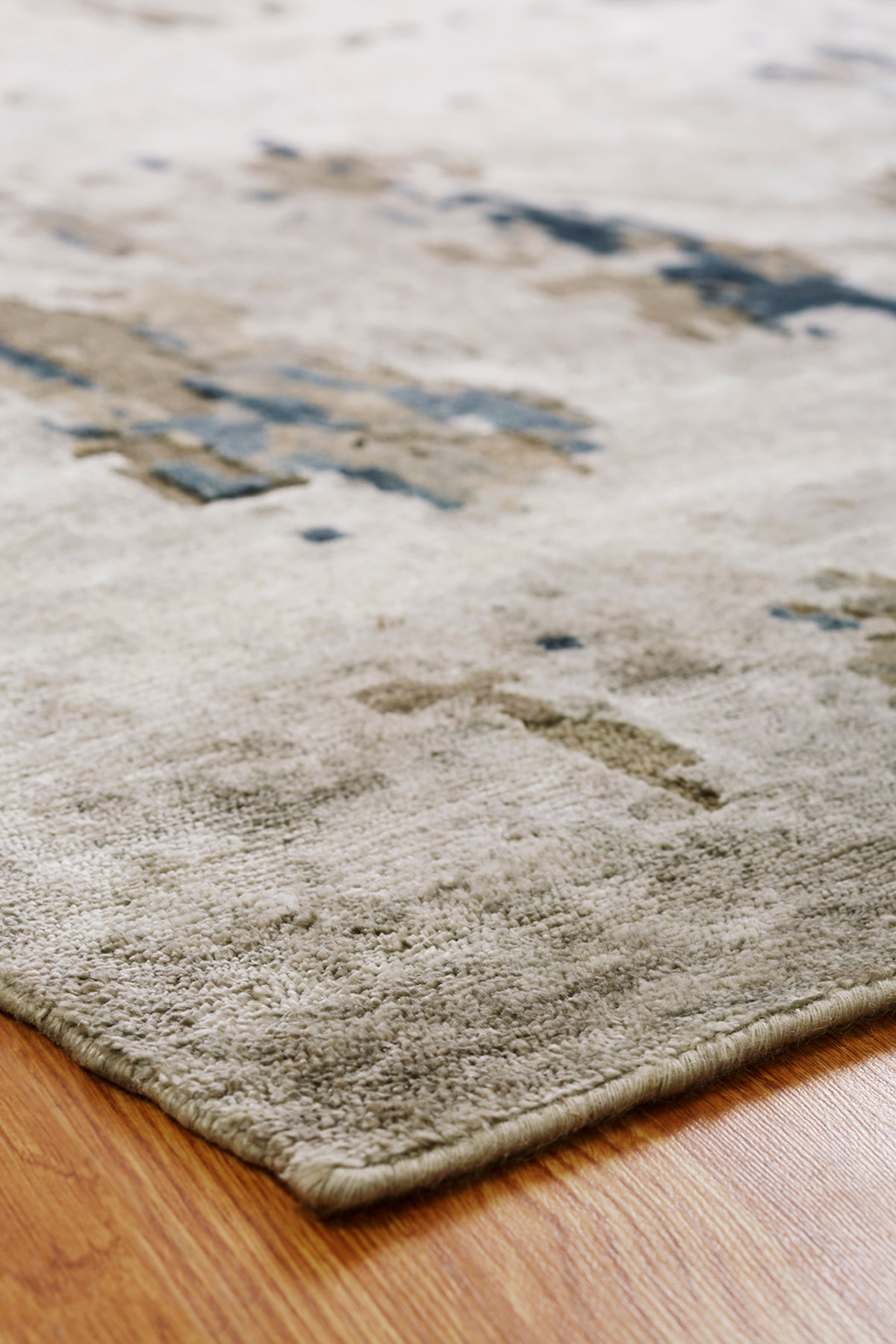 Bringing art into life, these are inspired by a series of abstract prints featuring subdued color palettes. Hand knotted in a Tibetan weave using a wool-bamboo silk blend, these rugs feature the added dimension of high-low carving.