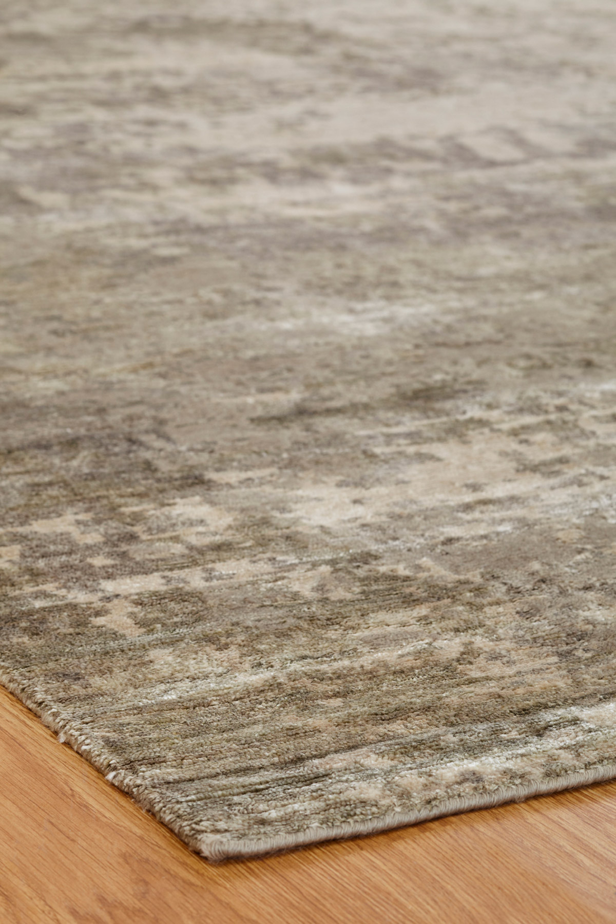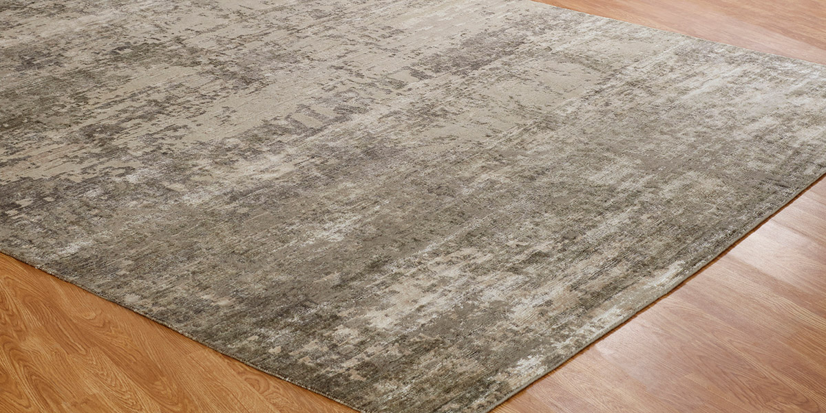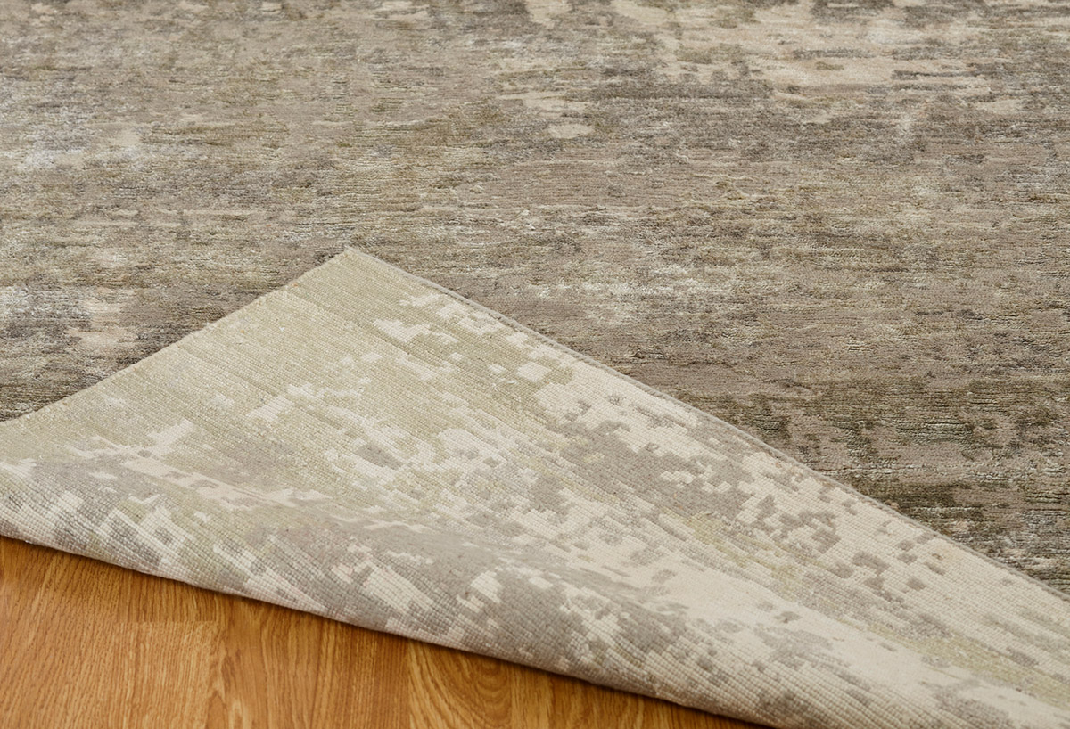 Bringing art into life, these are inspired by a series of abstract prints featuring subdued color palettes. Hand knotted in a Tibetan weave using a wool-bamboo silk blend, these rugs feature the added dimension of high-low carving.