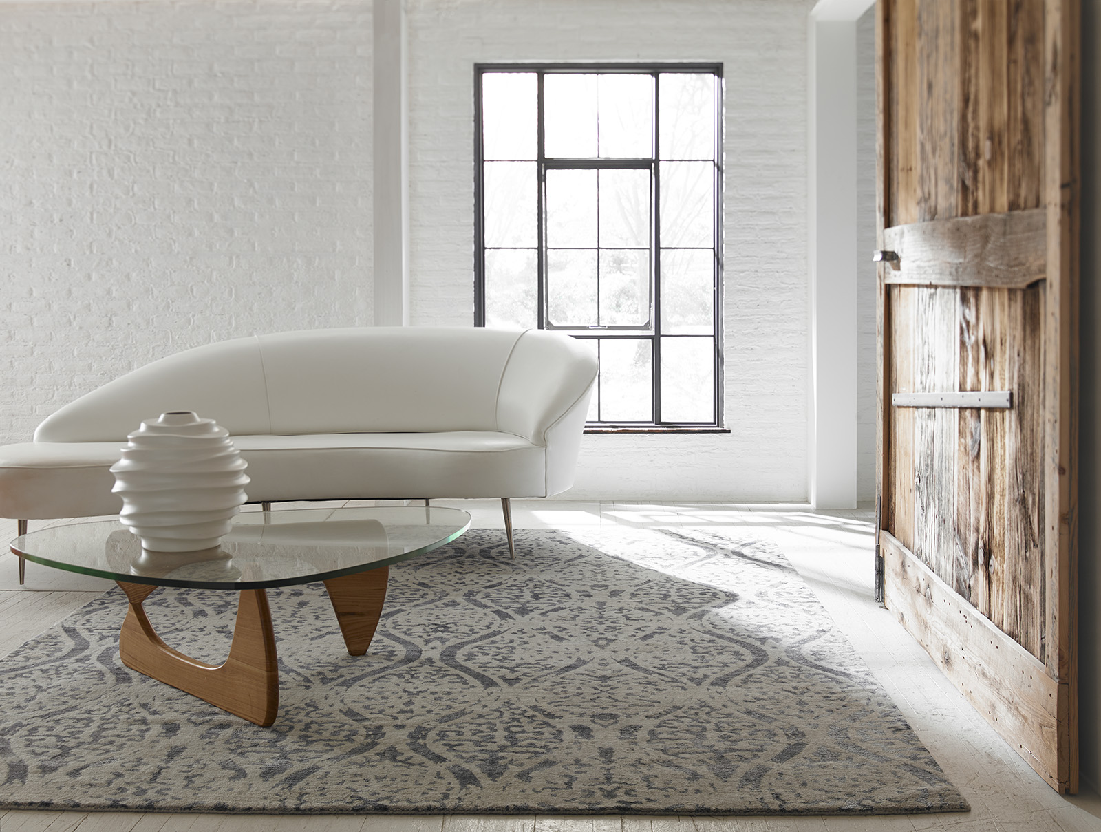 East-meets-West design aesthetic is created through subtle tonal colorations and geometric patterns