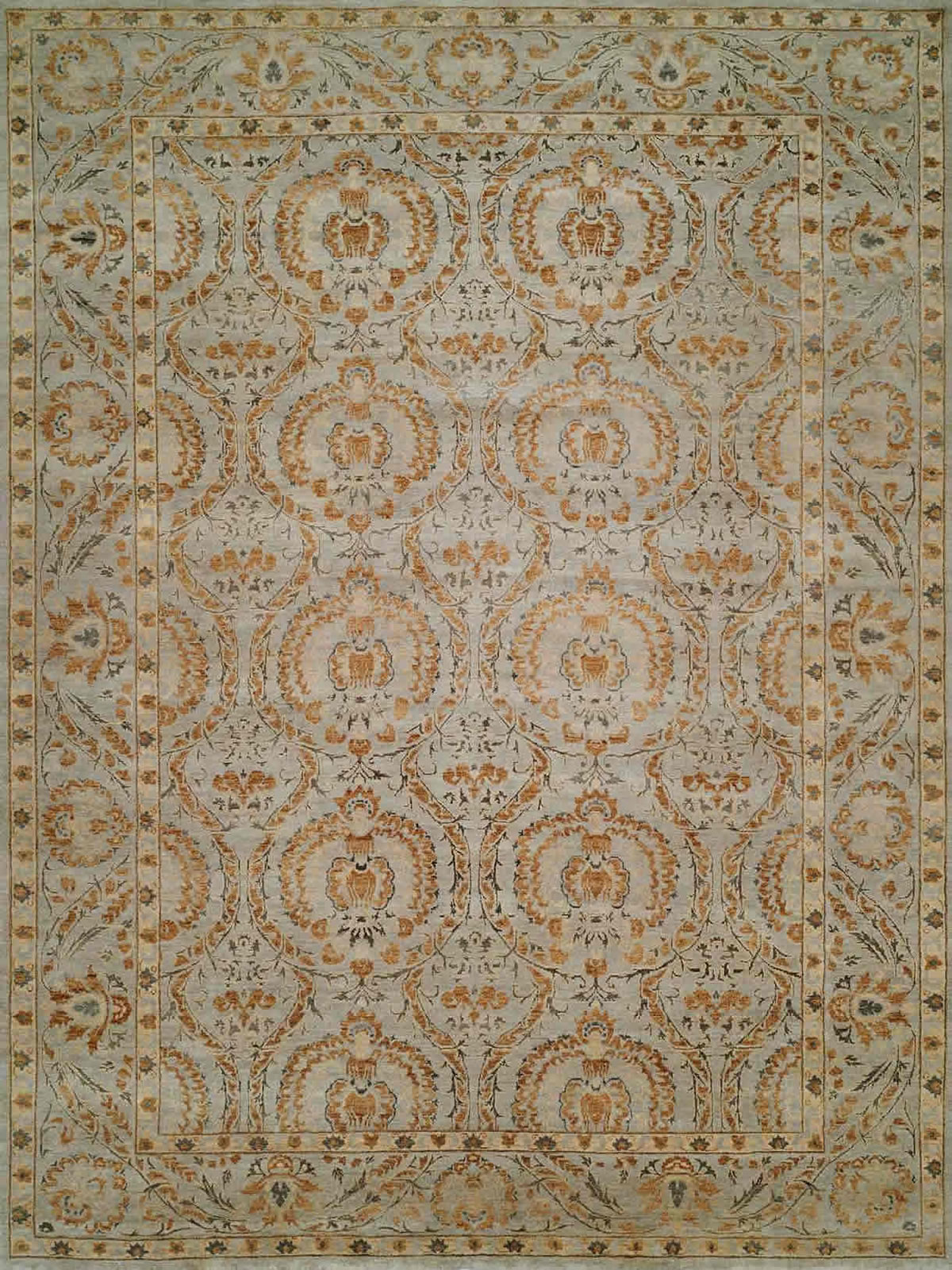 This collection incorporates colors and patterns that evoke the casual, yet stylish, elegance that is indigenous to fine English homes. These hand-knotted rugs portray a fusion of high fashion, transitional, and classic traditional rug patterns in stylish colorations made of 100% premium hand-spun wool.