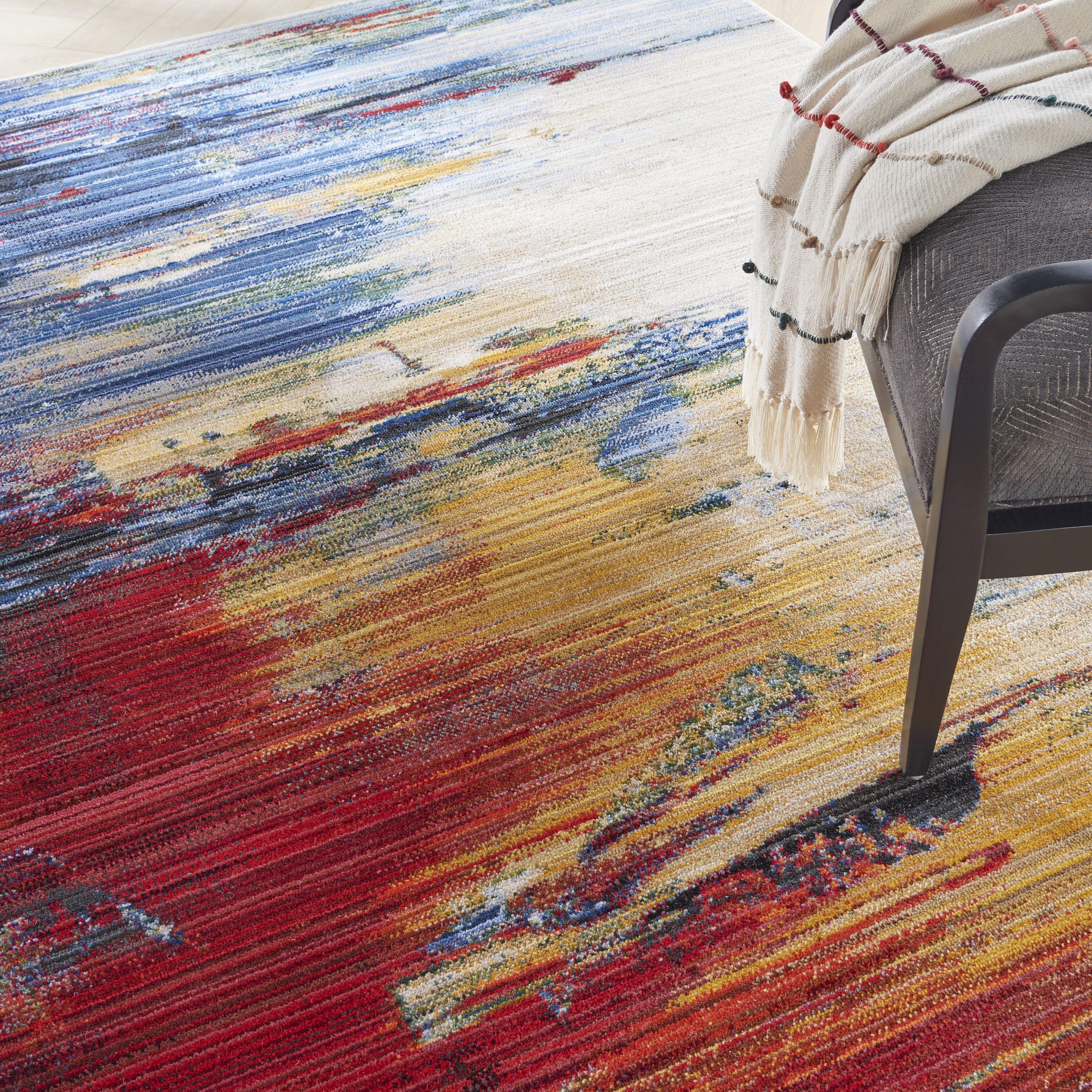 This area rug is certain to infuse any interior with colorful energy