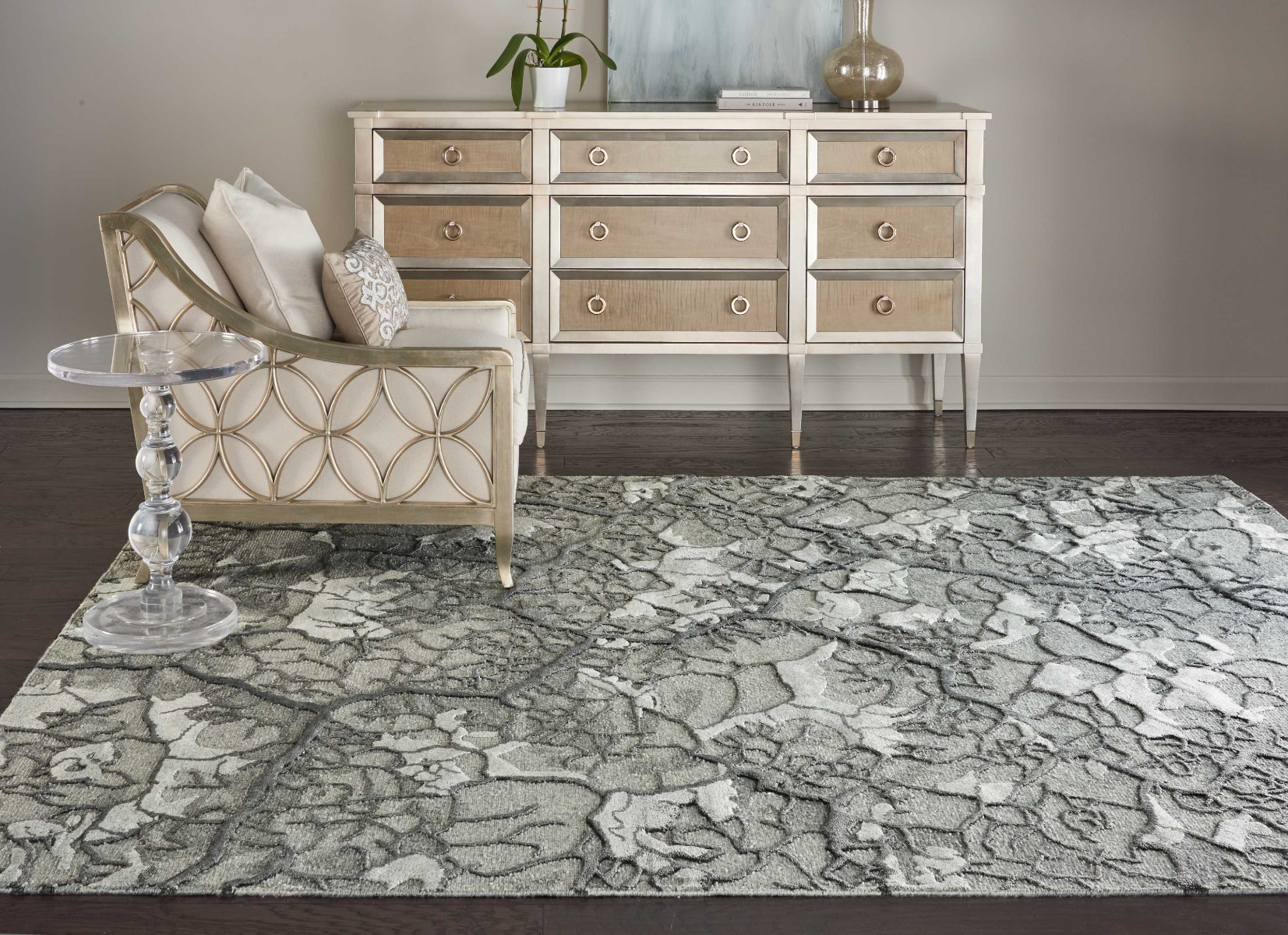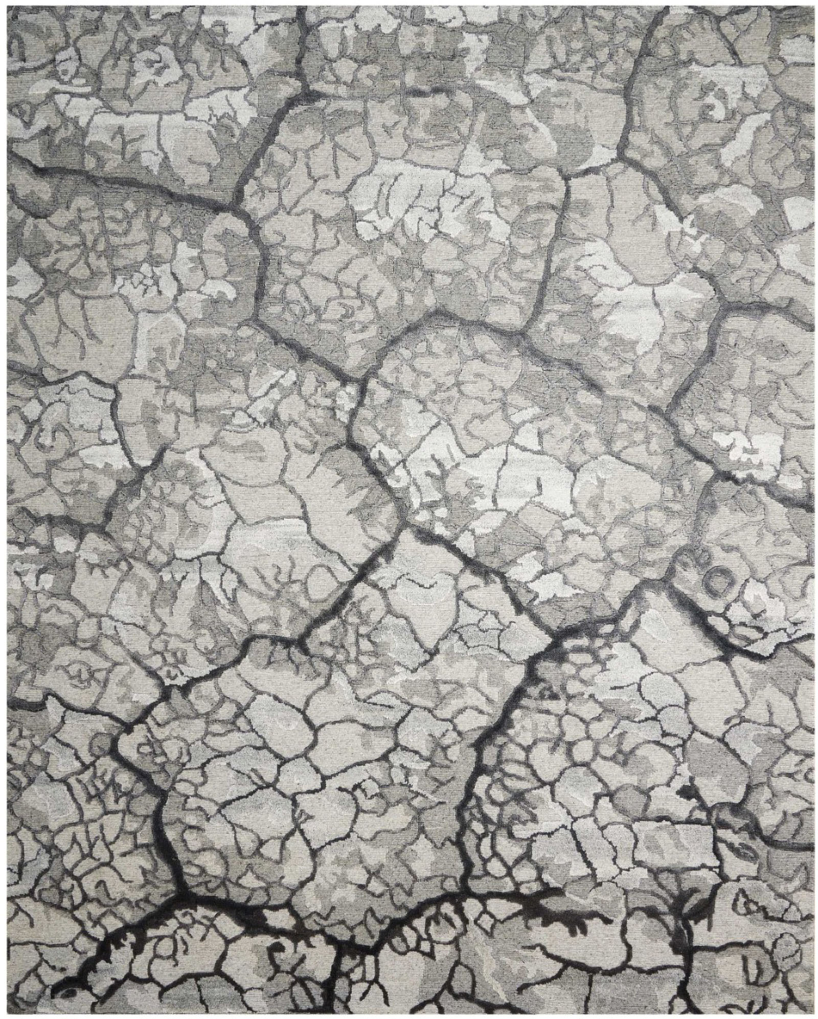 Tantalizing abstract patterns inspired by natural landscapes play out in refined and subtle neutral colors
