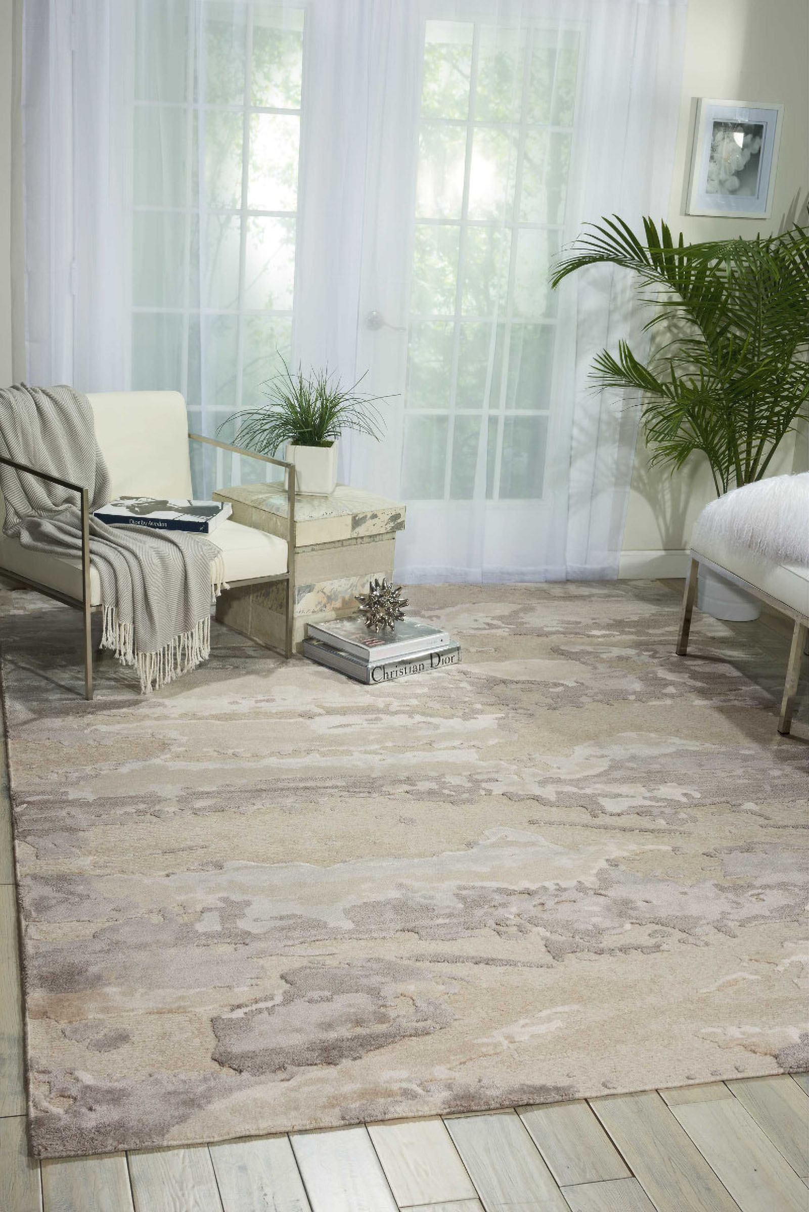 Tantalizing abstract patterns inspired by natural landscapes play out in refined and subtle neutral colors