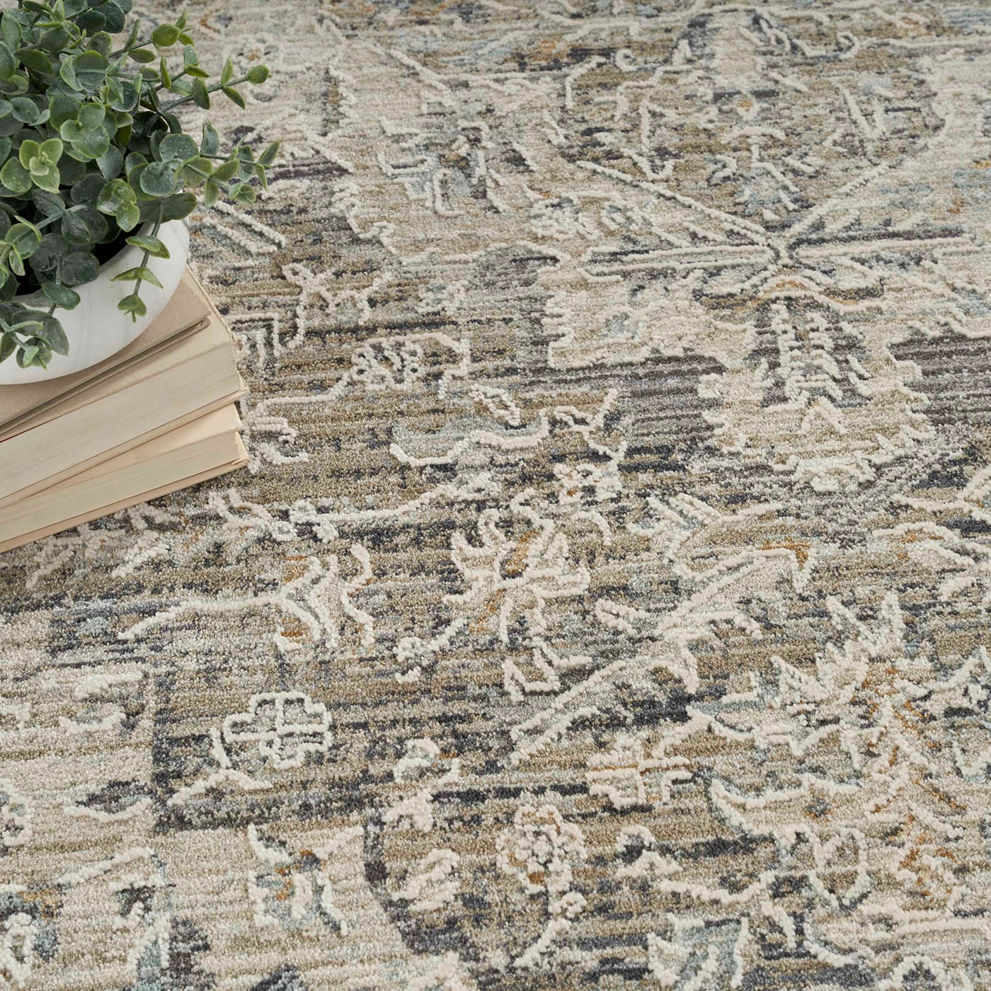 Stunning designs complemented by subtly raised accents, nuanced color palettes, and purposeful distressing that lends a vintage feel