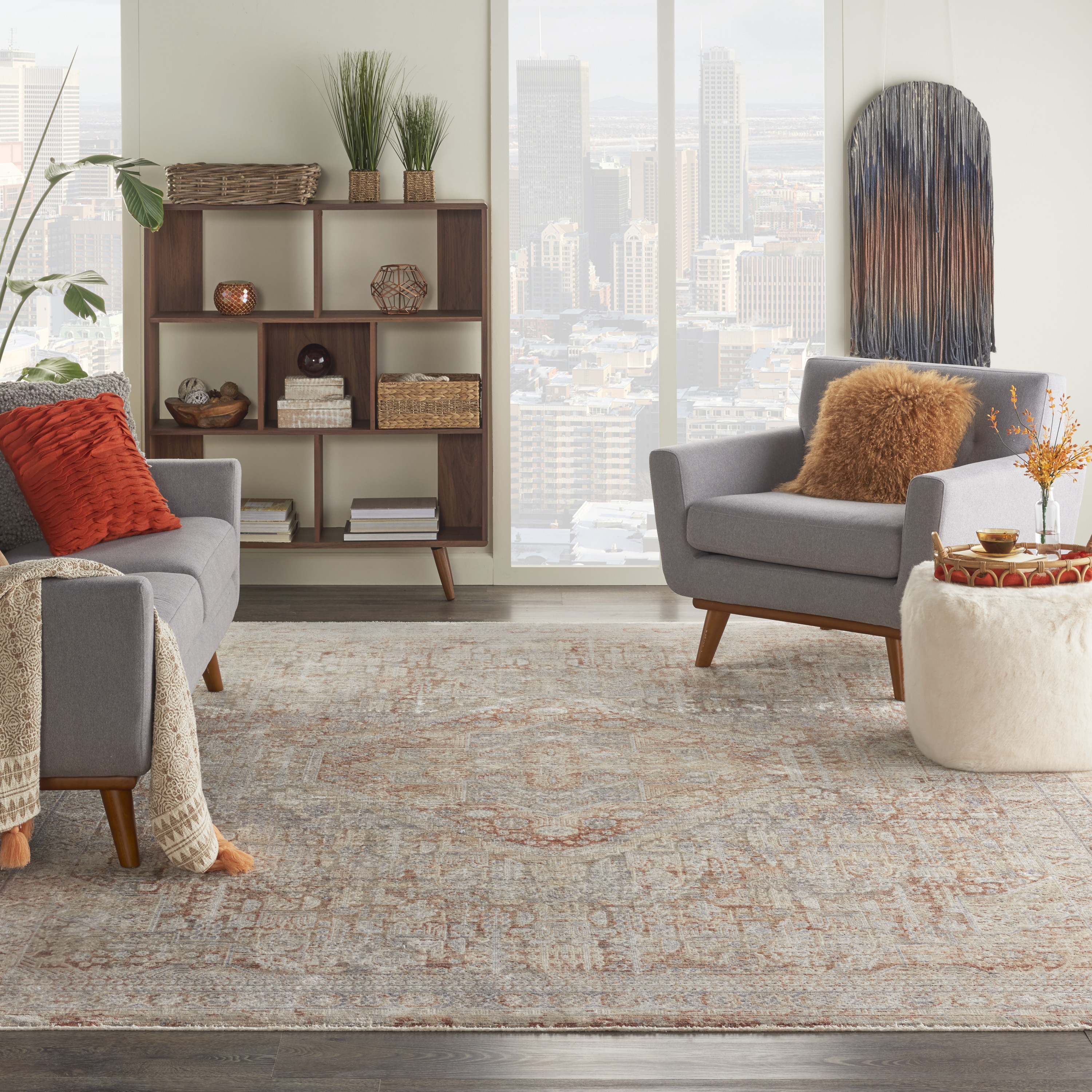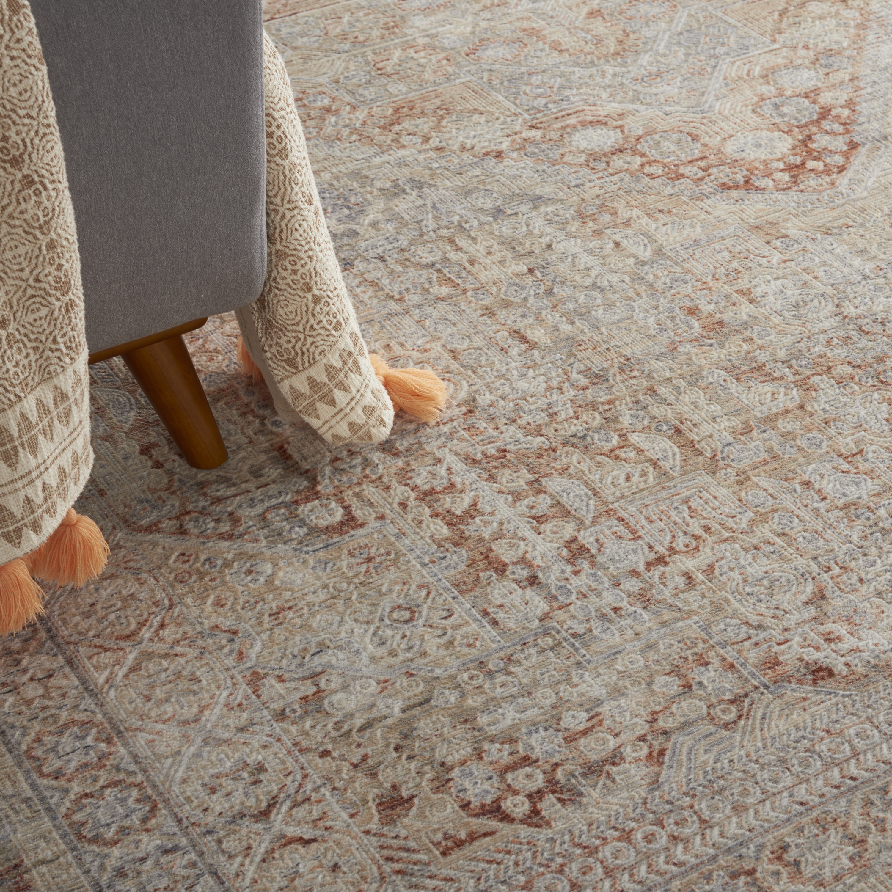 Revival | Luminescent | 181220: Grey/Brick area rug