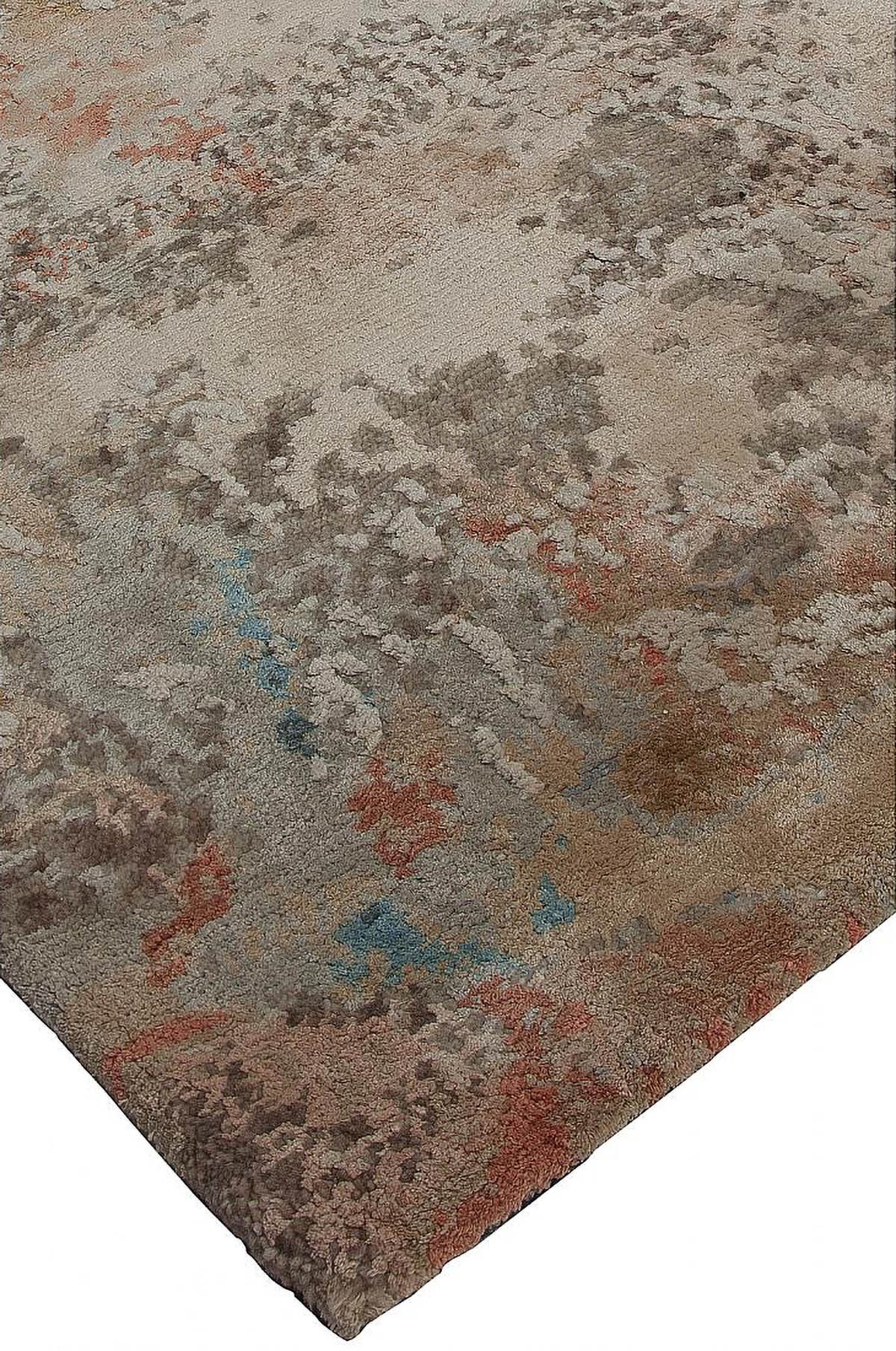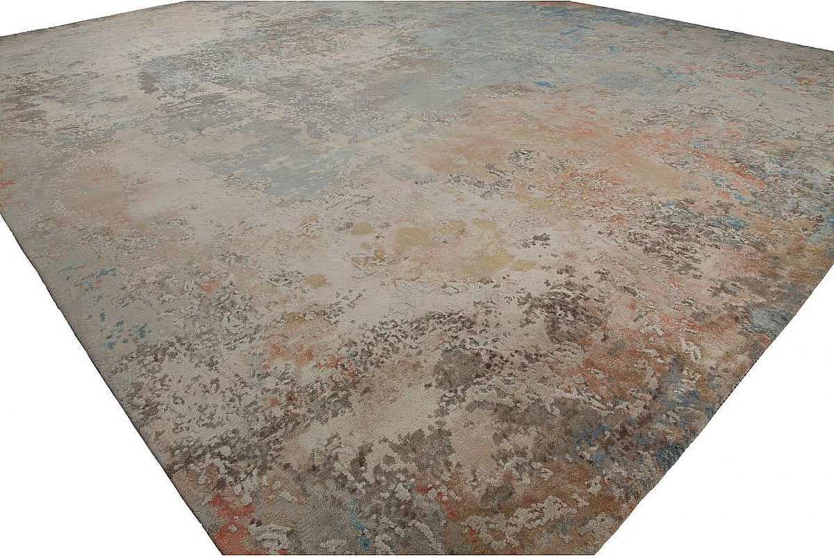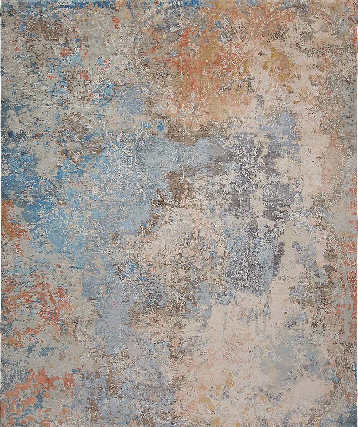 Unique abstract designs, each in a rainbow of colors. Hand-knotted in India in the most luxious wool and silk, this collection adds drama and beauty to any room.