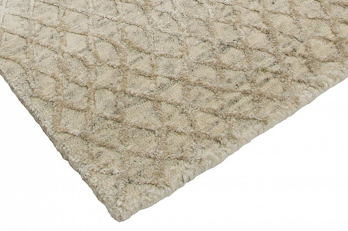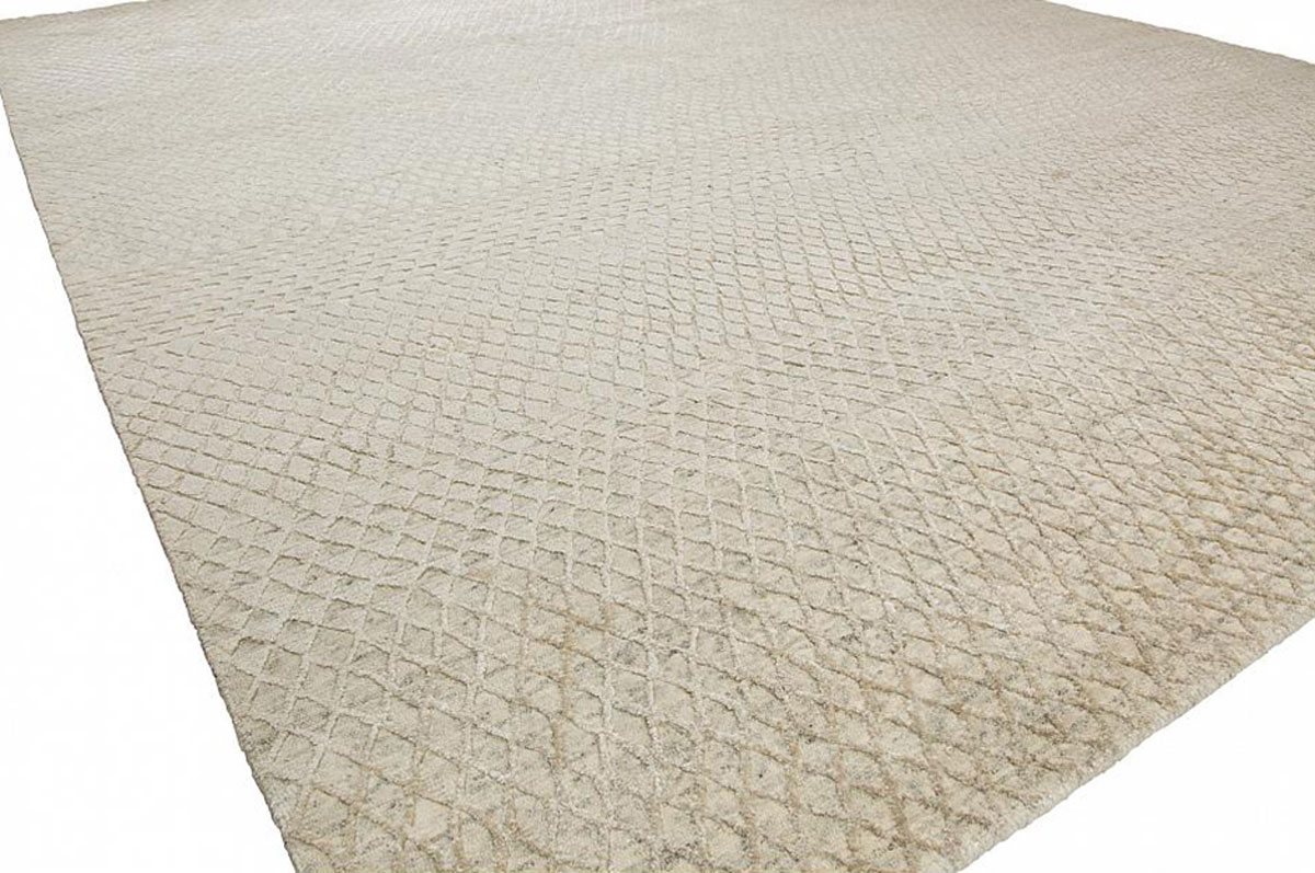This collection is finely knotted in India in a blend of New Zealand wool and art silk. Unique transitional looks both in design and texture featuring a heavy cable-knit textured geometric design