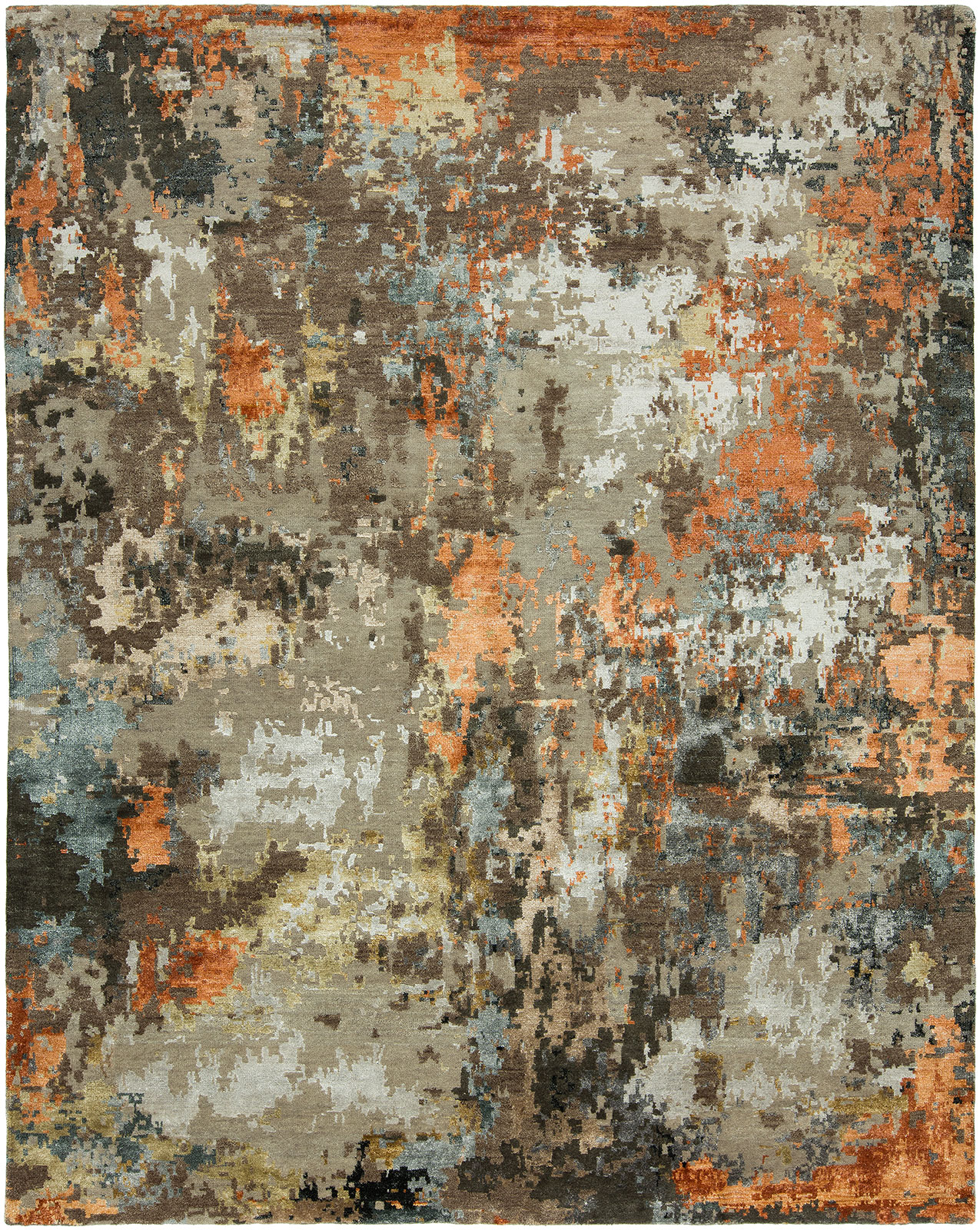 Vibrant colors are marbled with soft muted shades, creating a collection of transitionally abstract designs that are styled for contemporary lifestyles. Hand knotted in India, in a blend of New Zealand wool and viscose. A soft plush textured pile gives each rug a dimensional look and feel.