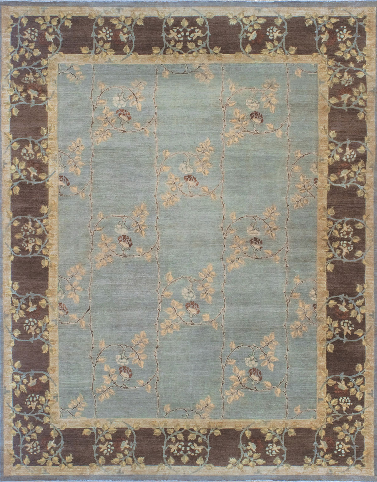 Soft earth tones and graceful lines complement the modern vine and trellis design in the Chobi-Trellis Rug. Hand-knotted in the Northwest Frontier region of Pakistan.