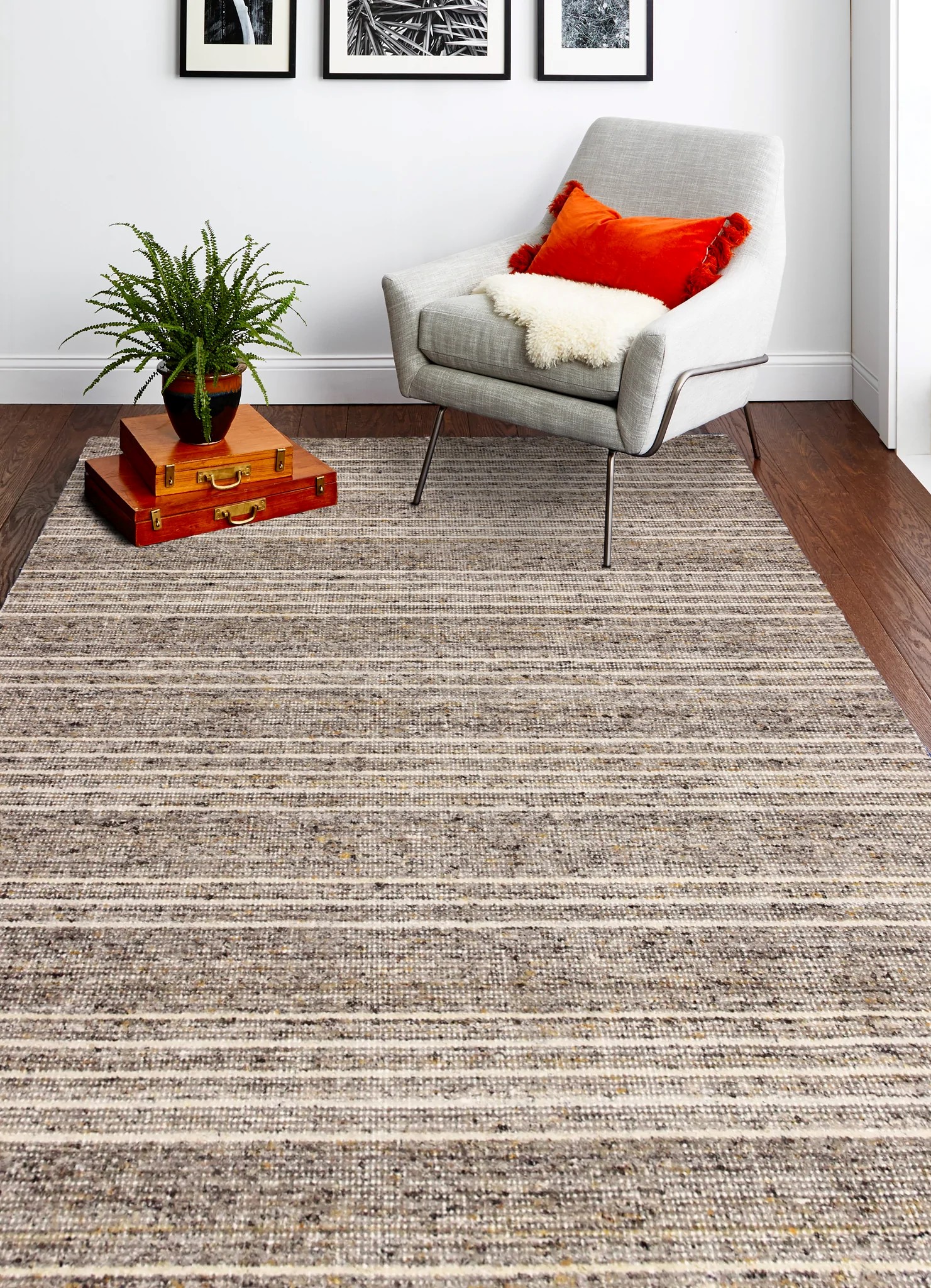 Subtle striations of harmonious, soothing colors, woven on a distressed low pile, gives your décor an added dimension