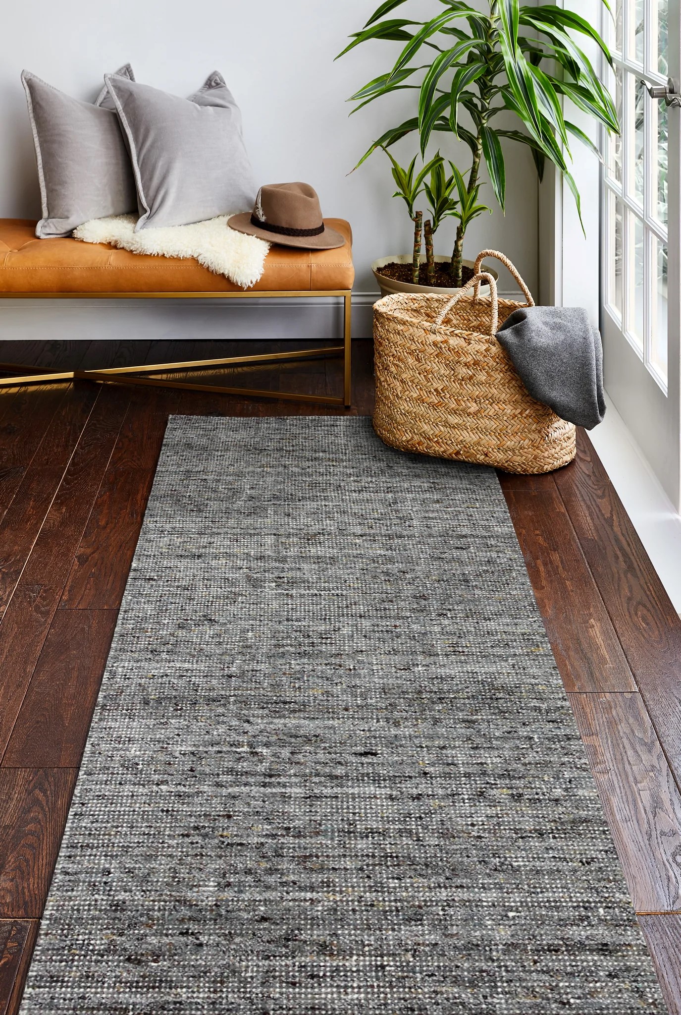 Add flexibility to your décor with these solid, all wool hand-loomed treasures. Subtle striations of harmonious, soothing colors, woven on a distressed low pile, gives your décor an added dimension. Gentle signs of wear are nuanced throughout for added texture.